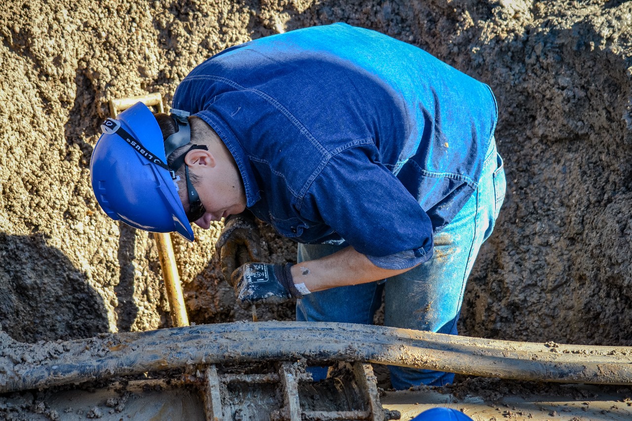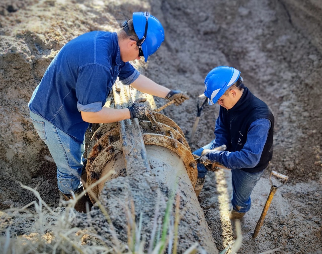 Nuestro personal de Agua y Saneamiento finalizó la intervención sobre el Acueducto de 500mm, emplazado a la vera de la Ruta Nacional A010. Para ejecutar las mencionadas obras, fue necesario desvincular el acueducto en su totalidad. Por tal motivo, las tareas de reingreso al sistema requieren de mucha cautela, ya que al tratarse de un acueducto que cumplió su vida útil, el llenado del mismo y la purga y estabilización, si no se realiza lentamente, puede provocar roturas por sobrepresión o golpes de ariete y también el ingreso de bolsones de aire en su interior.