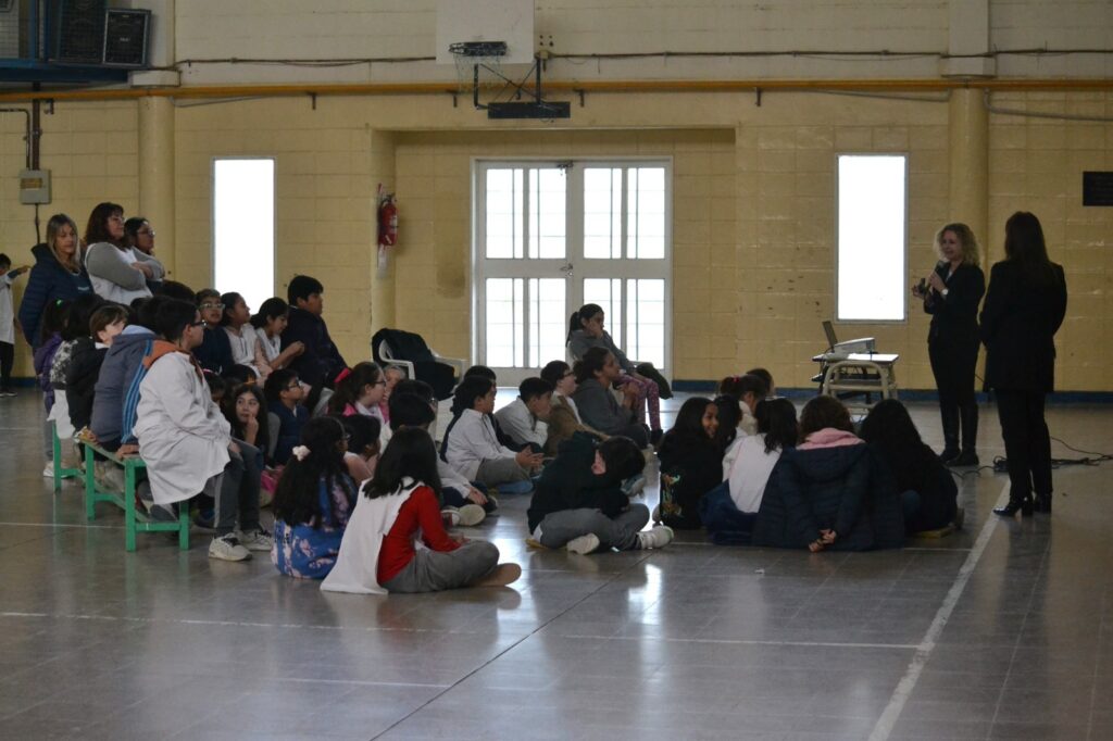 Durante la mañana de hoy la charla se realizó en la escuela Nro. 110 “José Manuel Estrada” ante la presencia de aproximadamente 40 niños que participaron curiosa y agradablemente junto a sus docentes. Agradecemos a la Directora del establecimiento, Camila Caputo y a Gladys Castañeda de la Delegación Administrativa Puerto Madryn del Ministerio de Educación por la coordinación y colaboración prestada. Estella Soria, vice presidenta de la Cooperativa, participó de la charla junto a personal de Prensa y Comunicación, destacando la importancia de estos encuentros con los estudiantes y los educadores, poniendo en valor el rol clave de la educación en el cuidado de los recursos.