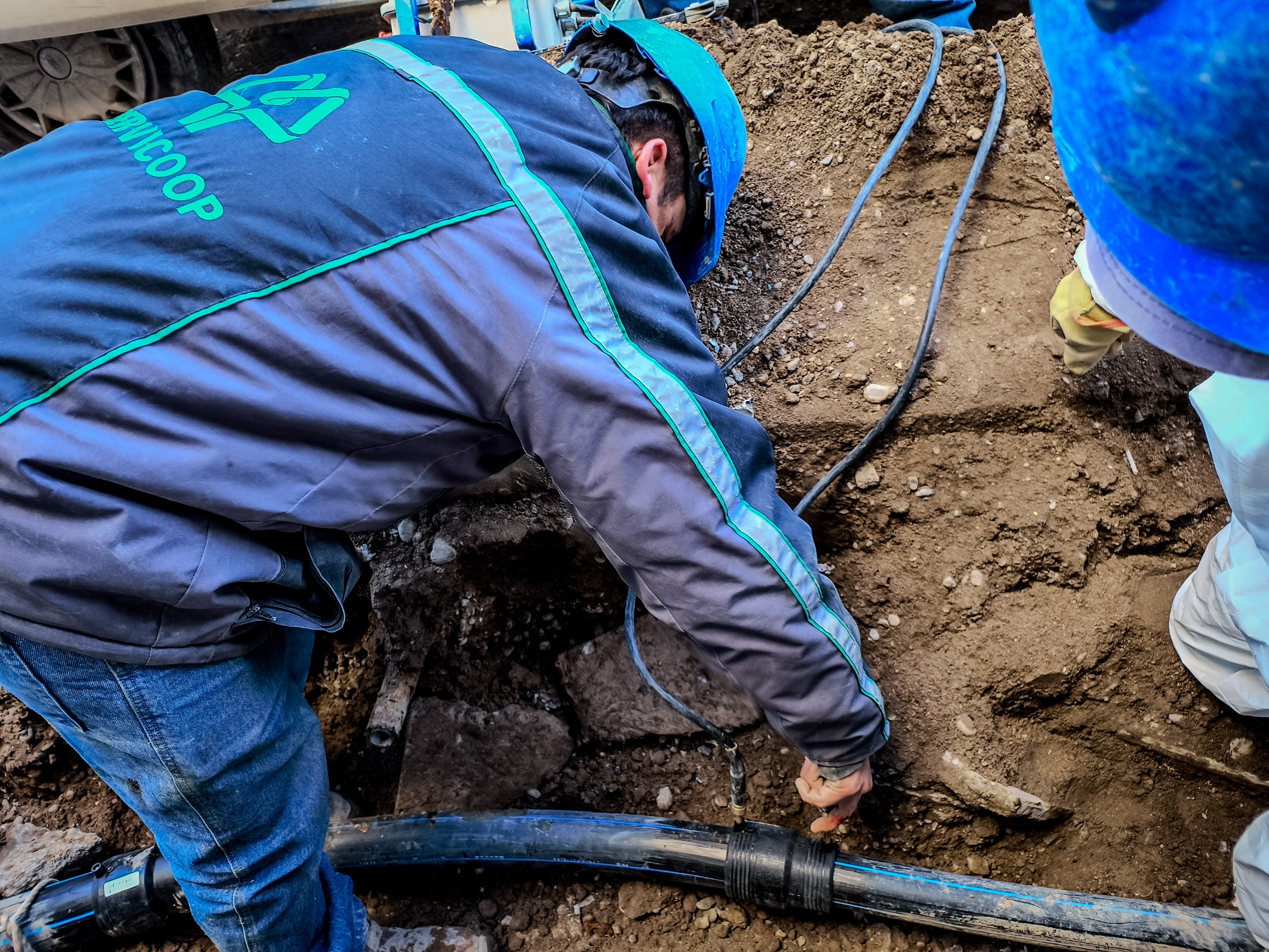 Nuestro personal de reclamos, dependiente de la Gcia. de Agua y Saneamiento, finalizará el traspaso de las correspondientes conexiones domiciliarias de agua potable a la nueva red, para que luego nuestro personal de Servicios Auxiliares pueda finalizar la obra, realizando la reconstrucción de las veredas afectadas.