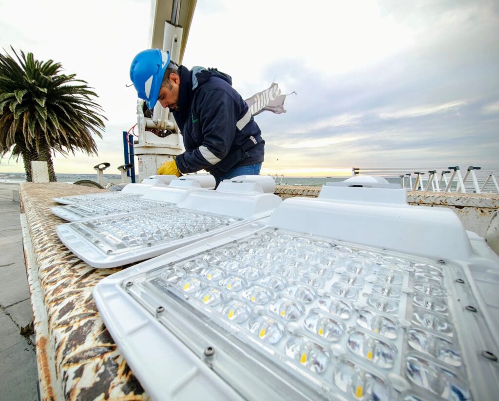 Una de las premisas del nuevo Consejo de Administración fue la de optimizar y modernizar el servicio de alumbrado en la ciudad. En este marco es que diseñó un plan de modernización en conjunto con la Municipalidad de Puerto Madryn, que contempla puntos estratégicos de la ciudad, espacios comunes, escuelas y sectores de alta rotación de los distintos barrios. Como primera medida se abordaron los ingresos de las escuelas, los puestos de control policial en los ingresos a la ciudad y ahora es el turno de la rambla. Se tiene proyectado el reemplazo íntegro de las luminarias, desde Néstor Moré hasta el Indio.