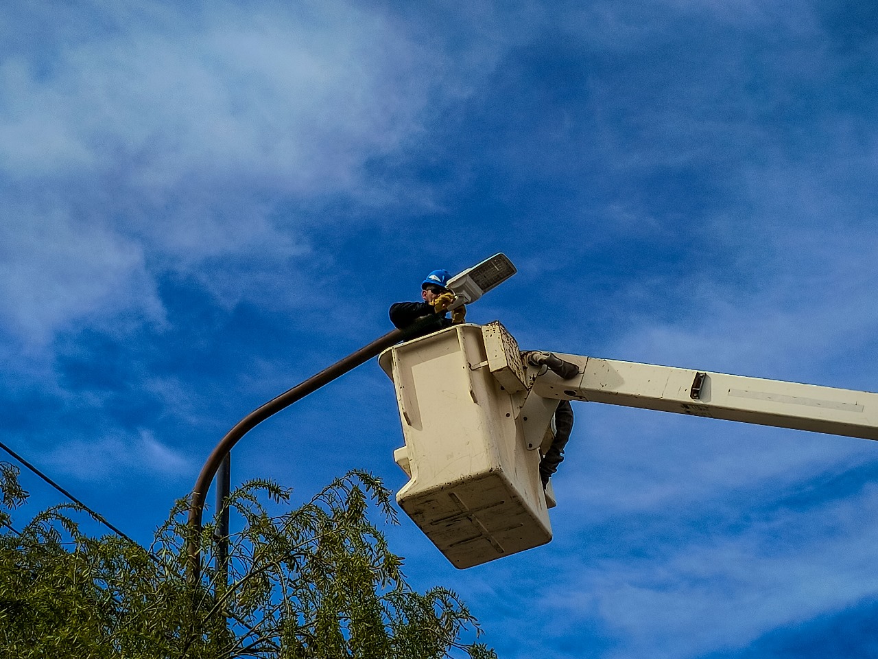 Instalación de alumbrado LED sobre calle Roberto Gómez