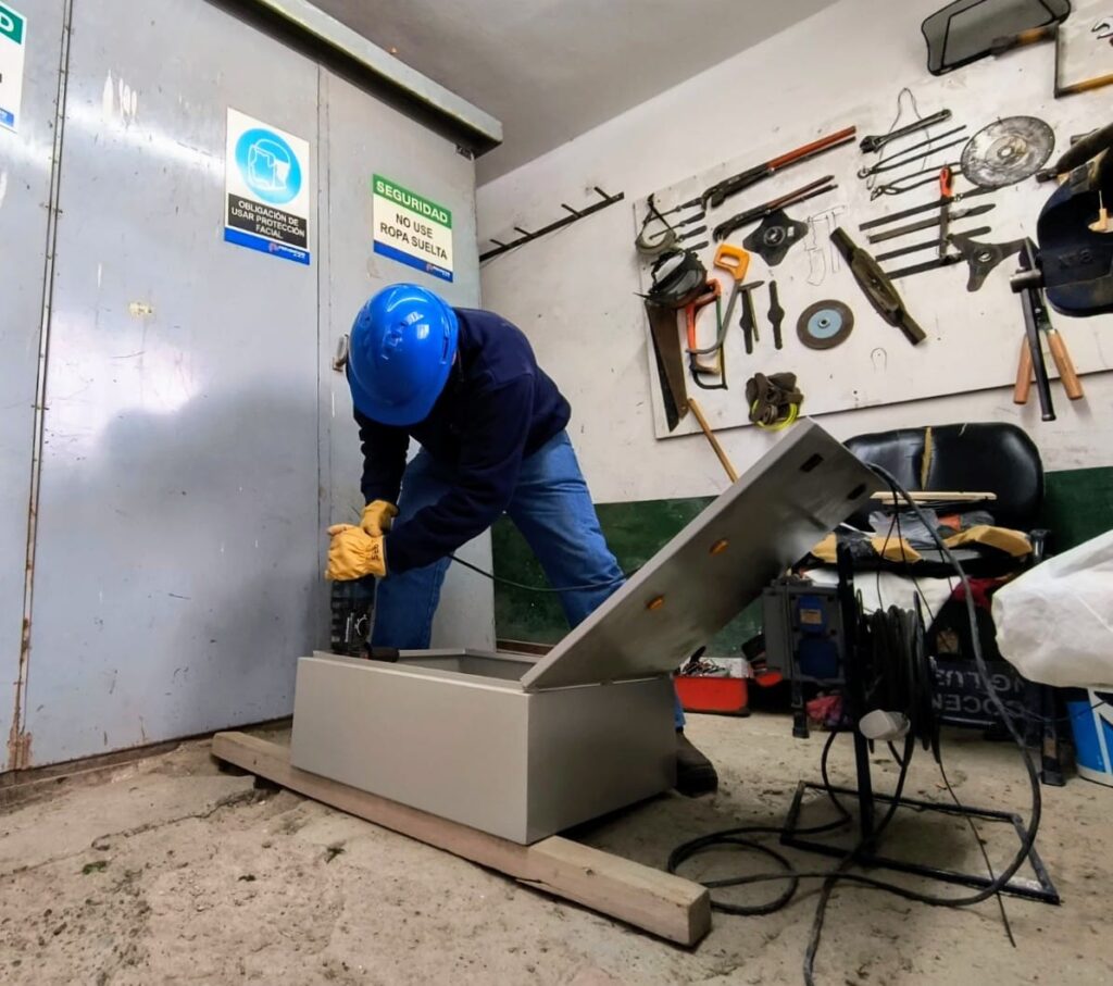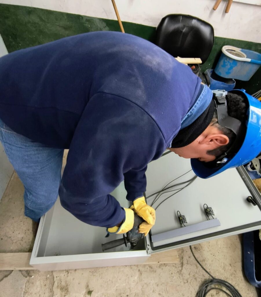 Durante la mañana de hoy, nuestro personal de Mantenimiento Electromecánico realizó la instalación de un tablero de medición y distribución y otro de control para los 4 aireadores de lagunas. Los mismos fueron construidos íntegramente en nuestros talleres y reemplazan al tablero existente, persiguiendo la constante modernización de los equipos.