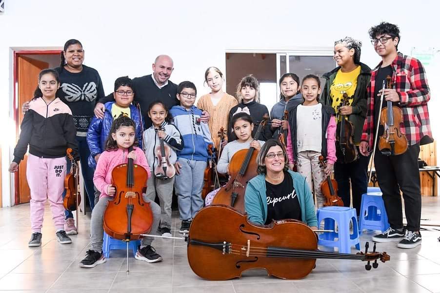 Es importante recordar que con el apoyo de la Subsecretaría de Cultura de la Municipalidad de Puerto Madryn, hace 2 años se creó una nueva experiencia de orquesta infantil a la que asisten mayormente niños y niñas del jardín 487, y de la Escuela 222 del Barrio Perón. La particularidad de esta experiencia es que pueden ingresar a aprender violín y violoncellos desde los 3 años de edad. Al día de hoy la orquesta cuenta en total con unos 35 integrantes.