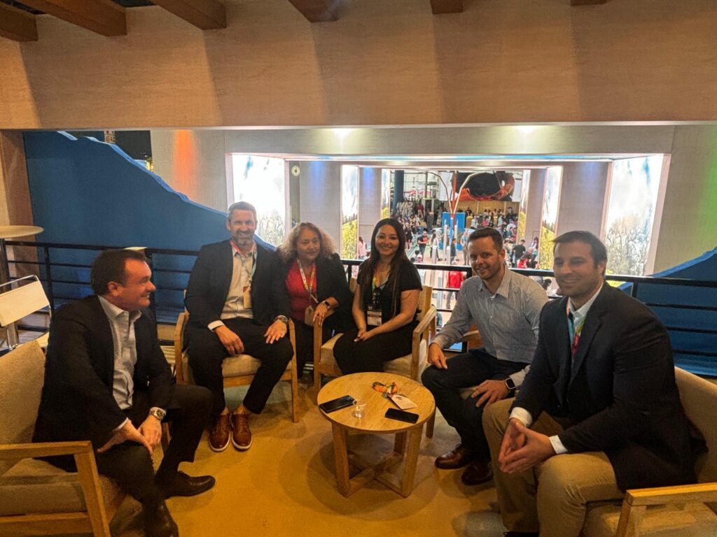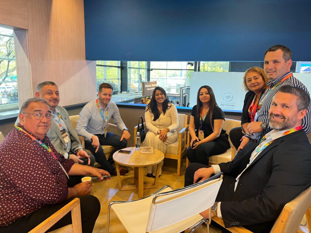 La comitiva de la Administración Portuaria de Puerto Madryn está encabezada por su titular, Diego Pérez, acompañado por la jefa de Operaciones del Muelle de Cruceros, Flavia Ituarte, y el asesor Comercial, Marcos Grosso.