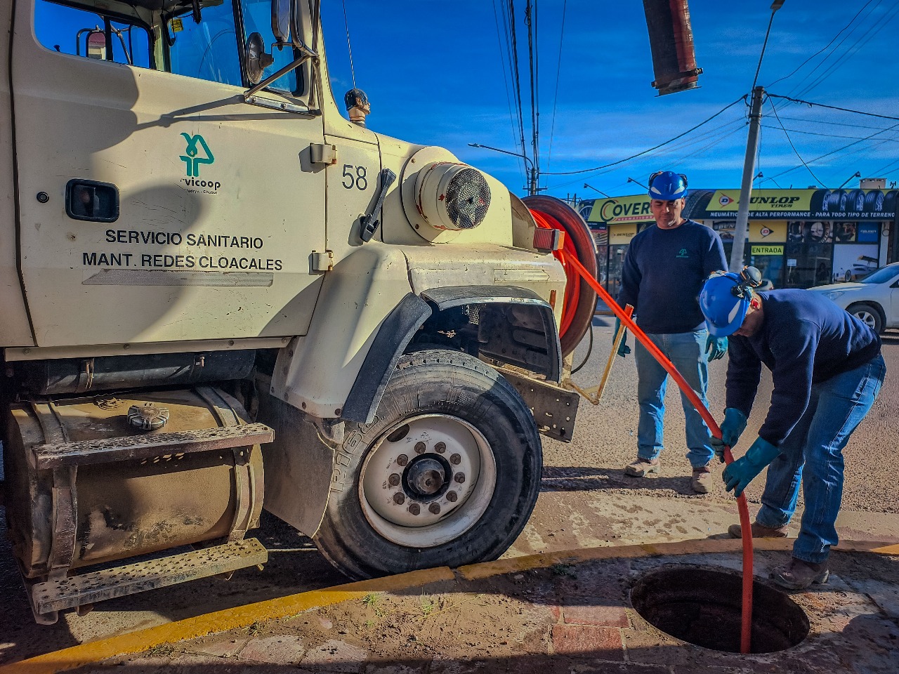 Para que el sistema este operativo con un régimen continuo de trabajo, es imprescindible contar con un cronograma de mantenimientos preventivos, tanto en cañerías, como en cámaras de registro, estaciones elevadoras, bombas, etc. En esta oportunidad, se intervino en distintos puntos del colector cloacal, ubicado sobre la traza de la Av. Gales, desde la intersección con la calle Piedrabuena hacia el este de la ciudad.