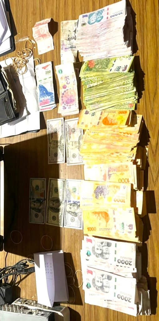 También se incautó otro automóvil particular, cocaína, marihuana, una pistola calibre 9 mm junto a una alta suma de dinero en efectivo en moneda nacional y extranjera y teléfonos celulares, entre otros elementos.