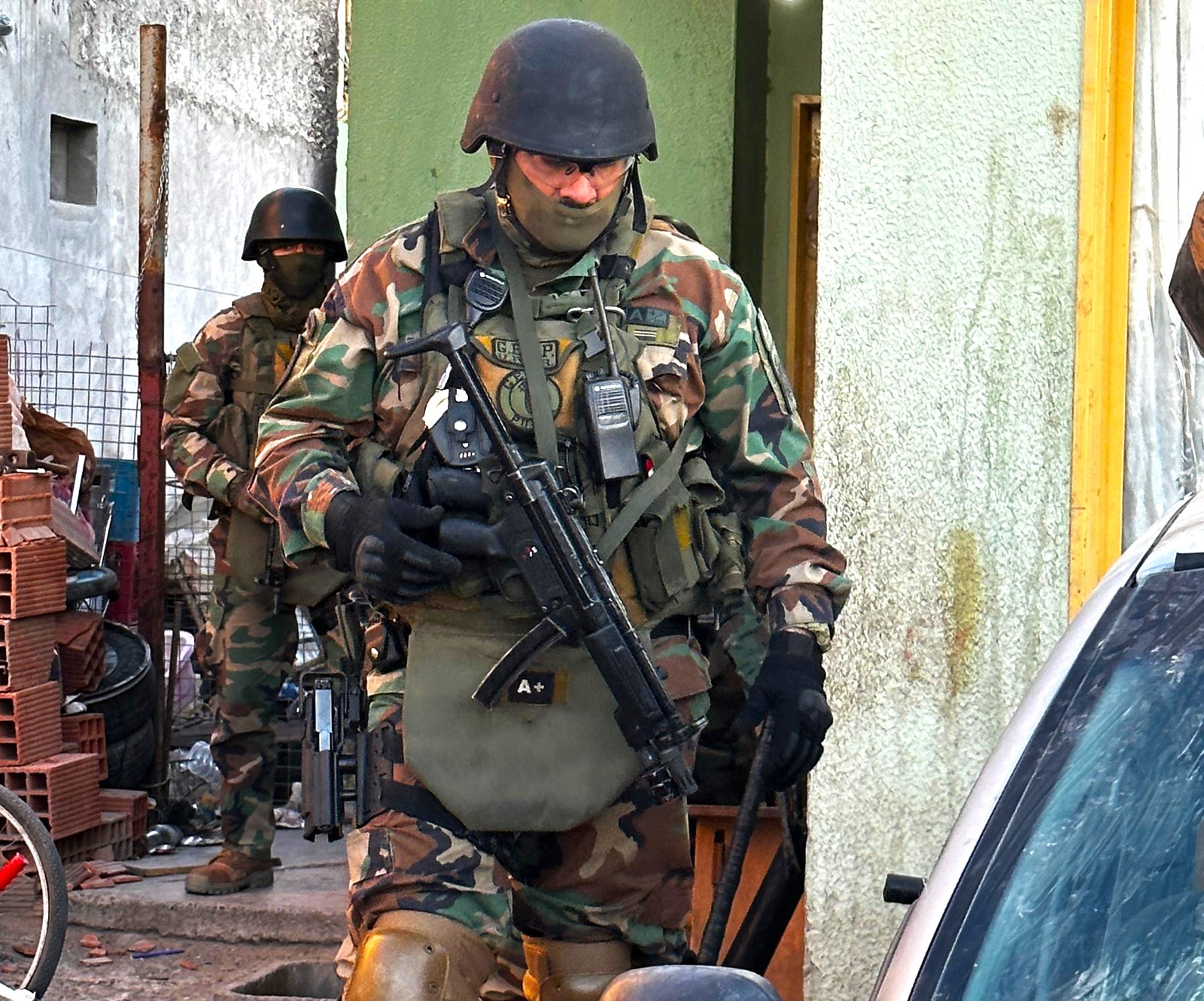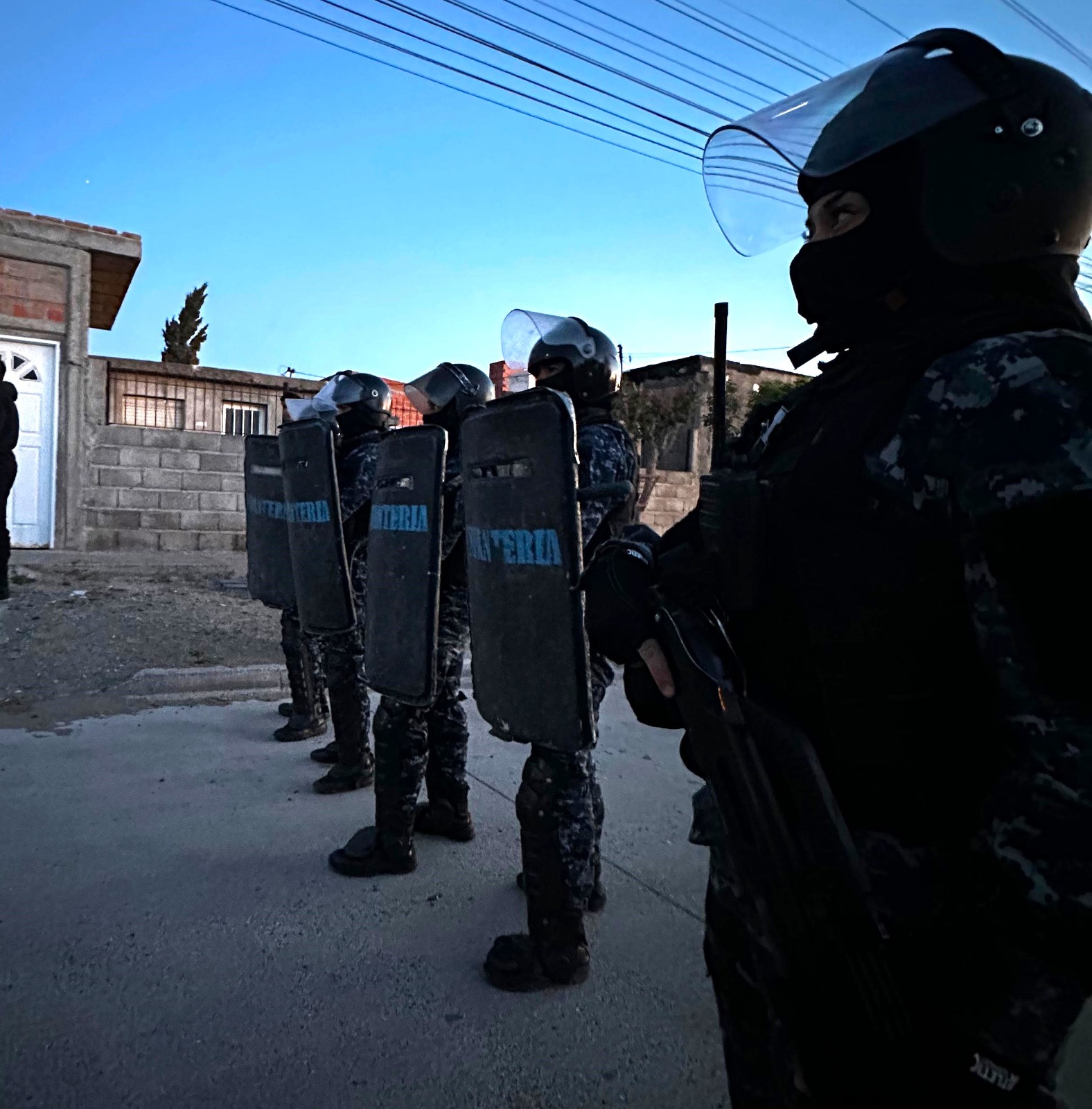 En los operativos intervino el GEOP para las irrupciones domiciliarias, Guardia de Infantería, División Drogas y Leyes Especiales, Sección Canes, Operaciones Rawson y la Policía Científica.