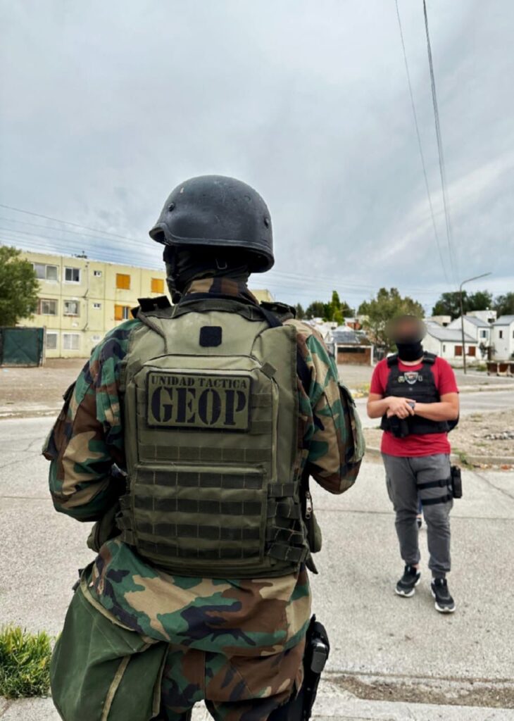Los procedimientos fueron coordinados de modo tal que varias fuerzas estuvieron involucradas en los allanamientos. En las interrupciones domiciliarias que llevó a cabo el GEOP, también participaron la División de Investigaciones de Puerto Madryn; la División Drogas y Leyes Especiales de Rawson junto con personal de la capital provincial y, además, colaboraron las Policías Científicas de Trelew y Rawson, en un despliegue que contó con la supervisión del Jefe del Área de Investigaciones, comisario inspector Juan Carrasco.