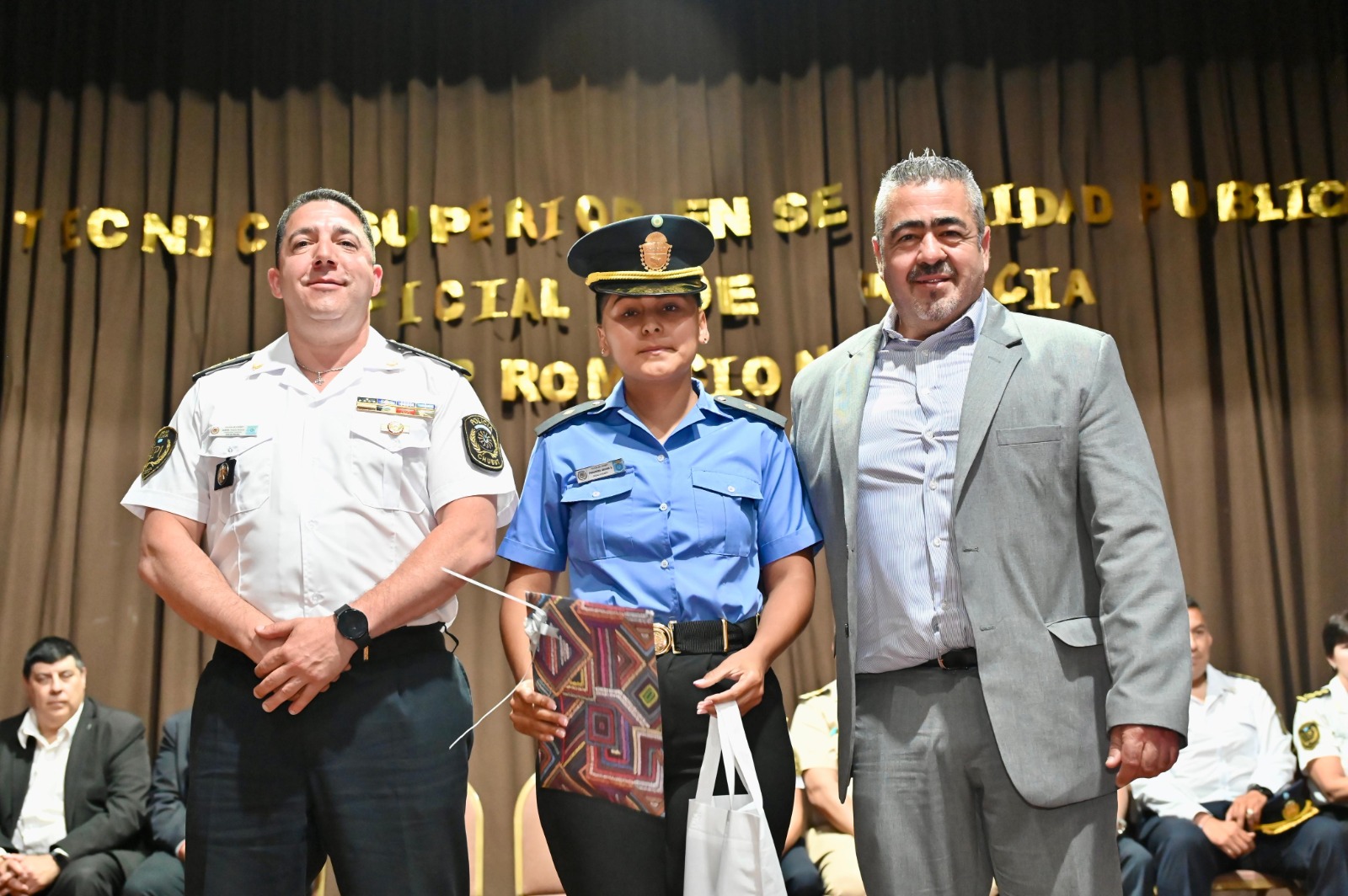 Se reconoció Cristian Ortega y a José Luis Jiménez como estudiantes destacados en ‘Instrucción Policial’; al Oficial Ayudante Cristian Rojas por la ‘Colaboración y Trabajos Logísticos con el ISFP N° 811’; a Mariano Ruiz en ‘Prácticas Profesionalizantes’; a Bruno Agustín Guenchu en ‘Planificación Estratégica y Gestión de la Seguridad’. Además, se entregaron presentes institucionales a Luz Torres Salesky; Darío Rodriguez Socaño y Rocío Velázquez Cheuquepal por ‘asistencia perfecta’.