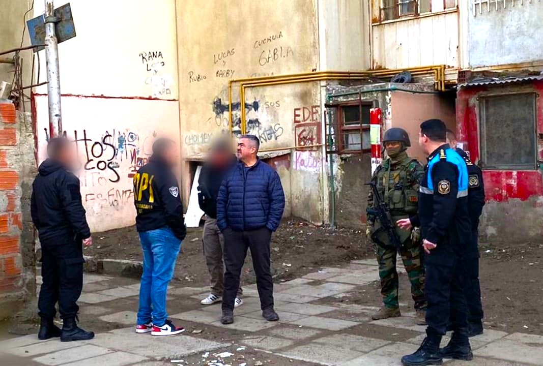 El ministro de Seguridad y Justicia, Héctor Iturrioz, y el jefe de la Policía del Chubut, comisario general Andrés García acompañaron el operativo que la División Policial de Investigaciones, a cargo del comisario Pablo Lobos, llevó adelante en relación con los ataques y lesiones por arma de fuego contra un vecino de ese sector.