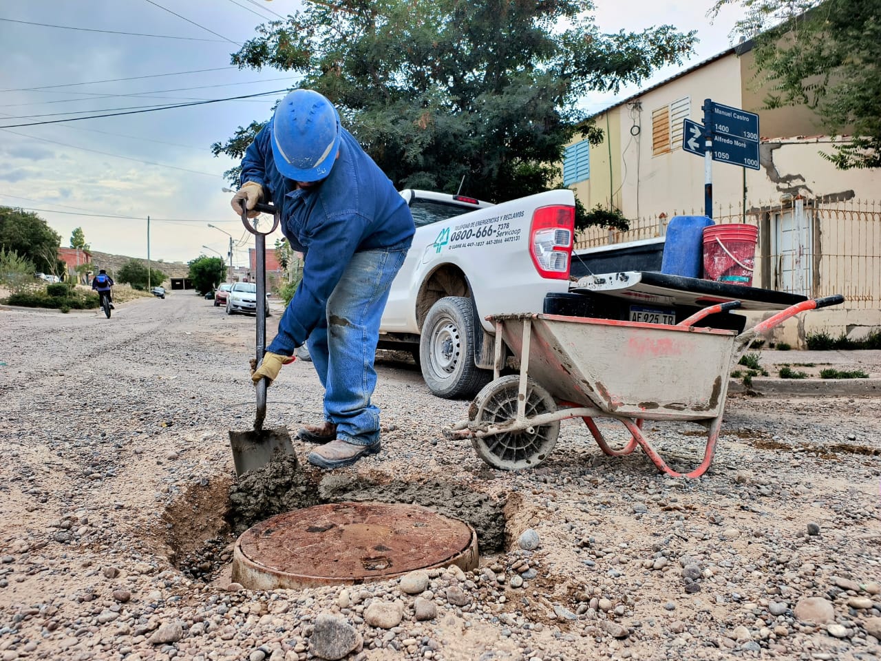 Nuestro personal de Mantenimiento de boca de registro, lleva adelante rutinariamente tareas para garantizar la operatividad de las cámaras de inspección del sistema cloacal. En esta oportunidad, se ejecutaron sobre la intersección de Manuel Castro y Alfredo More.