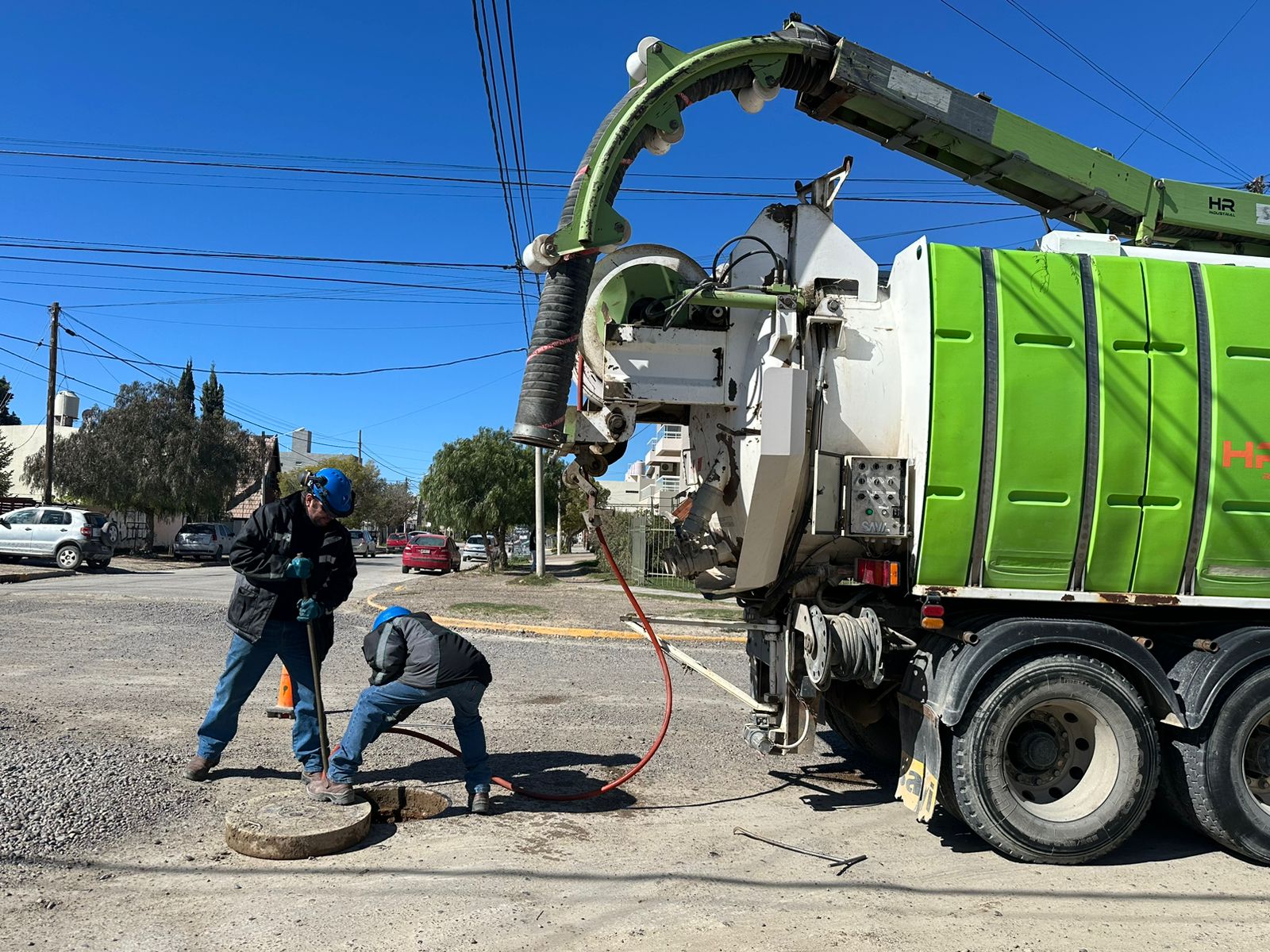 Nuestro personal de Saneamiento, realiza de forma rutinaria tareas de mantenimiento preventivo sobre el sistema cloacal, con el fin de optimizar su fluidez y garantizar el normal funcionamiento. En esta oportunidad, se ejecutaron tareas sobre distintas bocas de registro ubicadas sobre la traza de la calle Lewis Jones entre la Avenida Roca y Alvear.