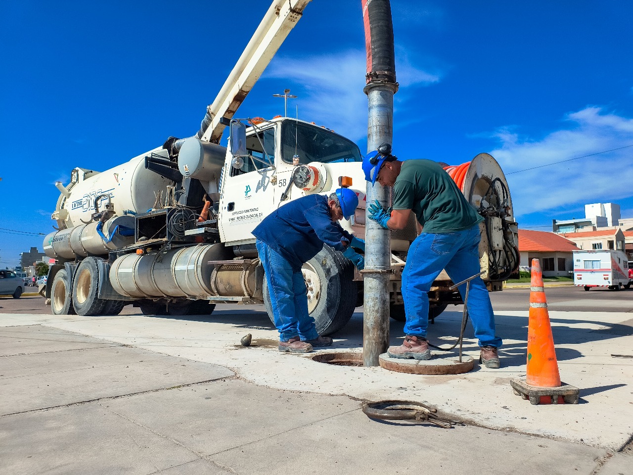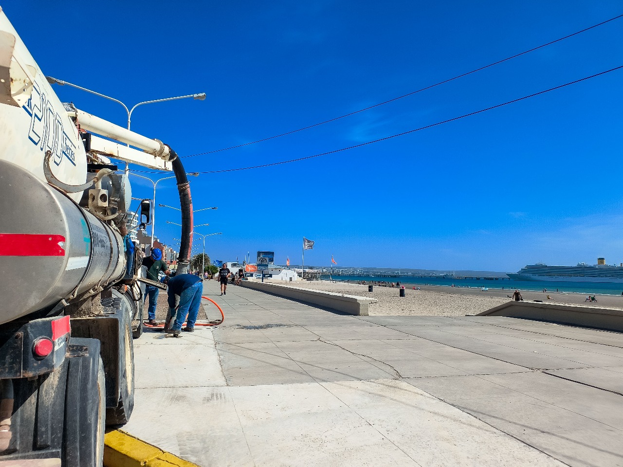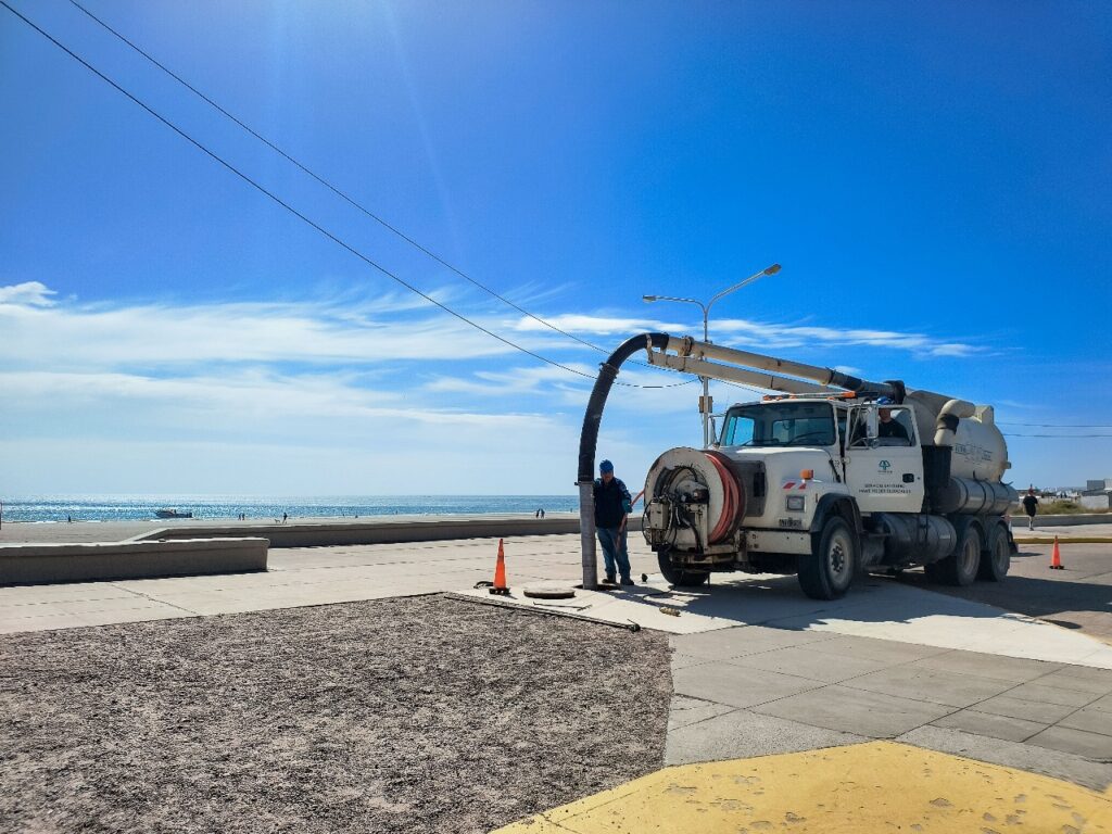 Nuestro personal de Saneamiento realiza de forma diaria tareas de mantenimiento tanto preventivo como correctivo, sobre el complejo sistema cloacal con el que cuenta Puerto Madryn. En esta oportunidad se ejecutaron tareas sobre el colector ubicado en Bv. Brown.