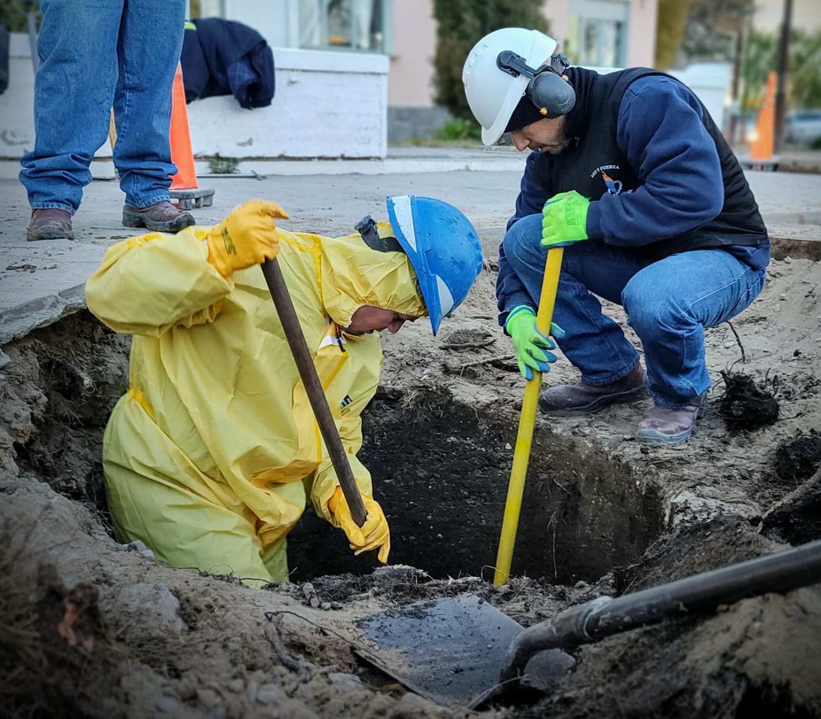 Nuestro personal de Agua y Saneamiento lleva adelante constantemente tareas de mantenimiento, desobstrucción y limpieza de cámaras de inspección, en distintos puntos de la ciudad. En esta oportunidad se ejecutaron en la intersección de las calles Bartolome Mitre y Moreno.