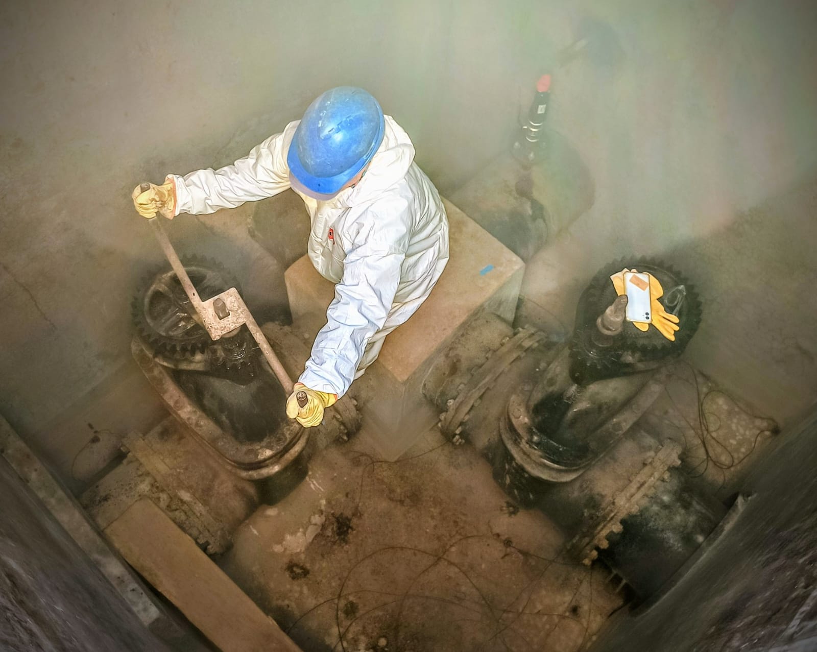 En esta ocasión, se realizaron dichas tareas de mantenimiento y lubricación sobre diversas válvulas de 500 mm, que son de vital importancia para la operatividad de la Reserva de 6000 m3 ubicada sobre Av. Gales y Av. Tierra del fuego.