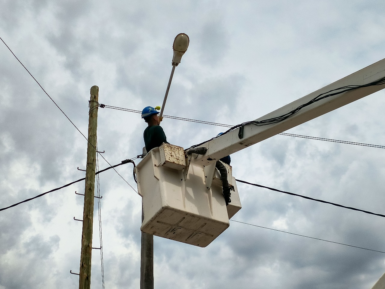 Luego de instaladas las nuevas columnas de hormigón, sobre el servicio de energía, nuestro personal de Alumbrado realiza tareas de mantenimiento y la readecuación de luminarias pertenecientes al servicio de alumbrado público. En esta ocasión, se realizaron tareas en la intersección de Av. Gales y Rosales.
