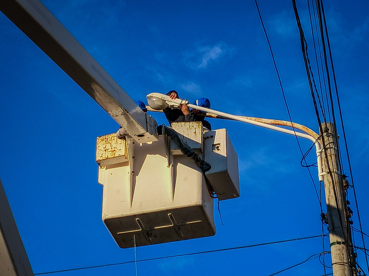 Local 3 septiembre, 20244 septiembre, 2024MedioDigital Mantenimiento sobre Alumbrado Público Luego de que se colocaran nuevas columnas y redes de baja tensión, nuestro personal realizó la instalación de nuevos brazos de alumbrado público en la calle Verdaguer, entre José Menendez y Roberto Gómez.