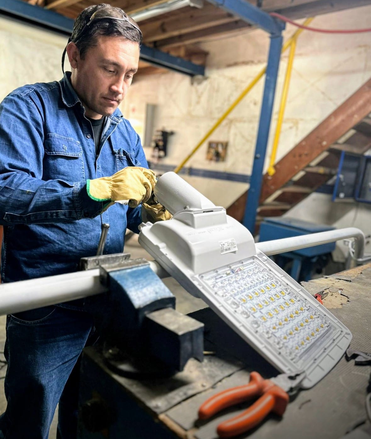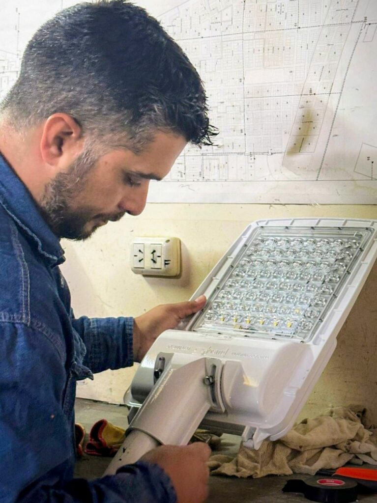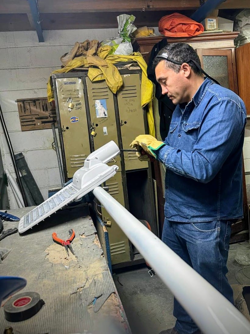 Nuestro personal de alumbrado es el encargado del funcionamiento y el mantenimiento del servicio de alumbrado en la ciudad. Para ello, un equipo de trabajadores y trabajadoras, desempeñan arduamente labores tanto en la calle, cómo también en el taller interno. En esta ocasión nuestro personal realizó el armado de brazos con lámparas, los cuales luego serán colocados en la vía pública.