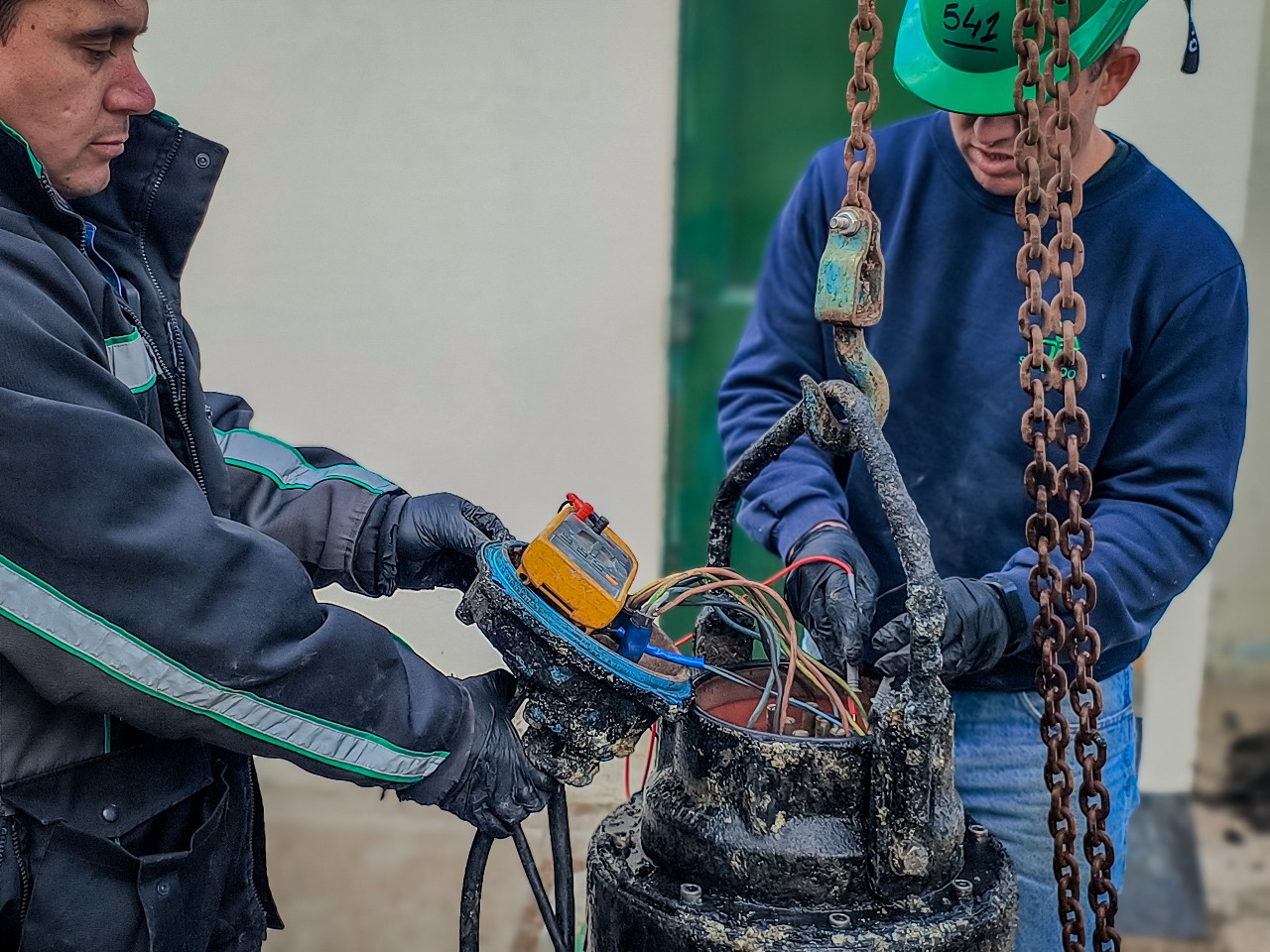 Nuestro personal de Mantenimiento Electromecánico realiza diariamente tareas de mantenimiento preventivo y correctivo sobre las distintas estaciones elevadoras de líquido cloacal que se encuentran en nuestra ciudad. Cada estación elevadora posee bombas de gran porte y un complejo sistema de automatismo, que permiten el funcionamiento ininterrumpido del sistema cloacal, las 24 horas del día los 365 días del año. En esta oportunidad se ejecutaron tareas de mantenimiento preventivo sobre las bombas impulsoras de la estación elevadora N° 3.
