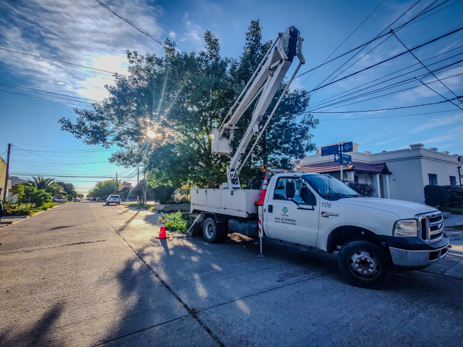 Nuestro personal de Energía lleva adelante rutinariamente el despeje aéreo de líneas de baja y media tensión. En esta oportunidad se ejecutaron dichas tareas, sobre la calle M. A. Zar al 1250 y también en Alem y Pje. E. García.
