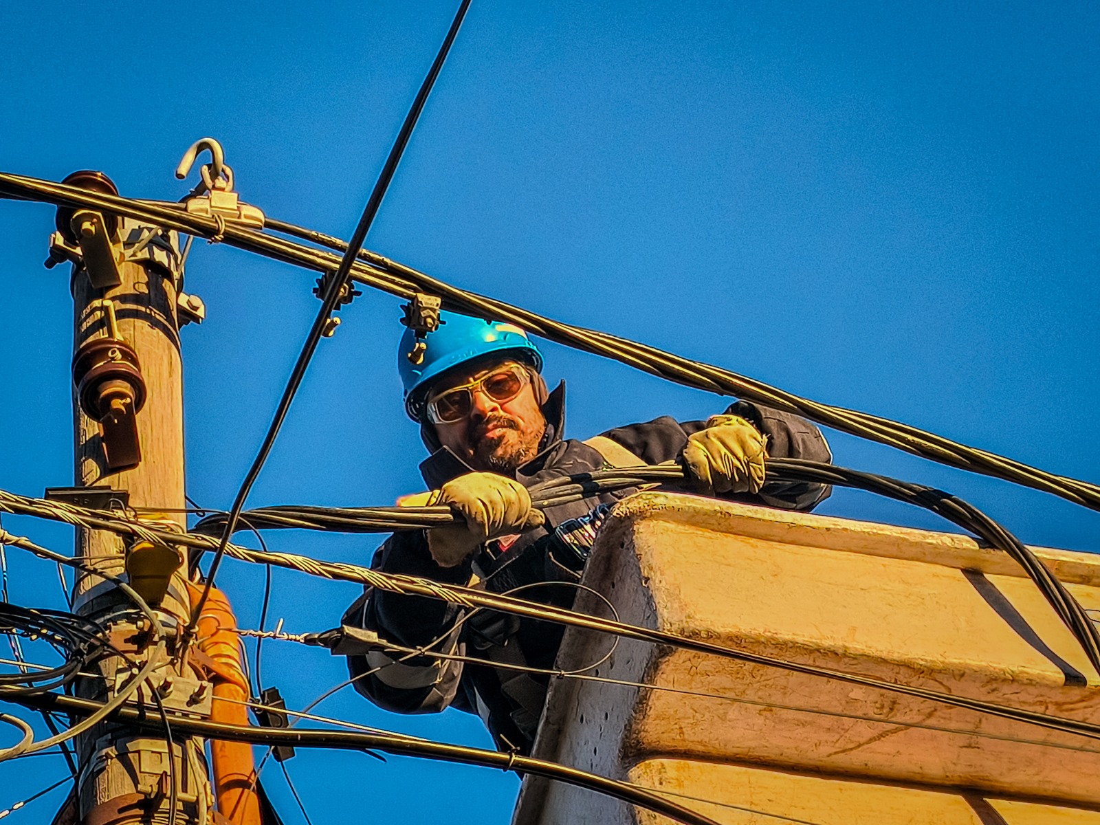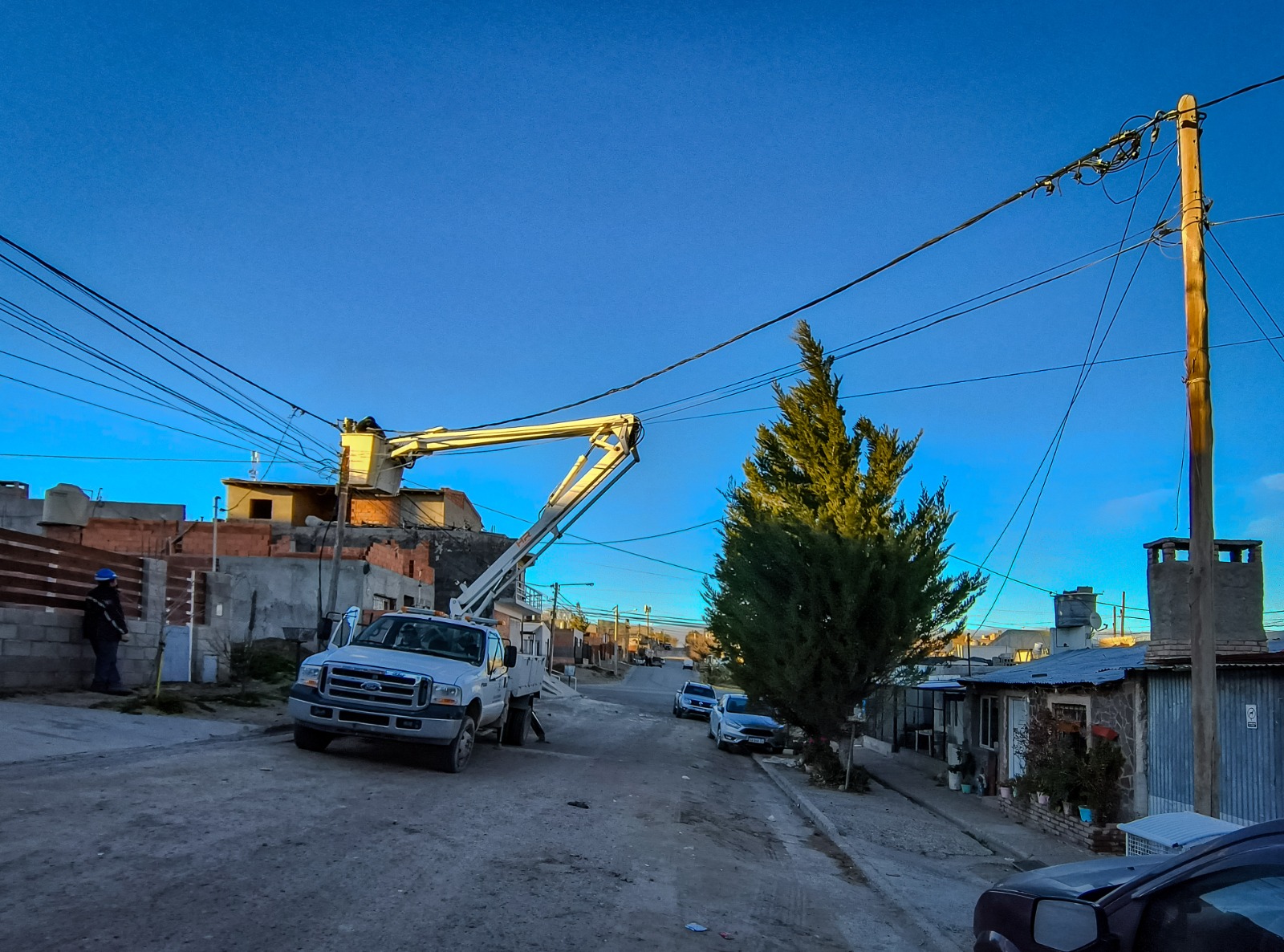 En la mañana de hoy, nuestro personal de Energía, llevó adelante la realización de un nuevo cruce de calle de redes de baja tensión, para dotar del suministro a nuevos usuarios sobre la calle Santiago del Estero, entre España y Av. Gales.