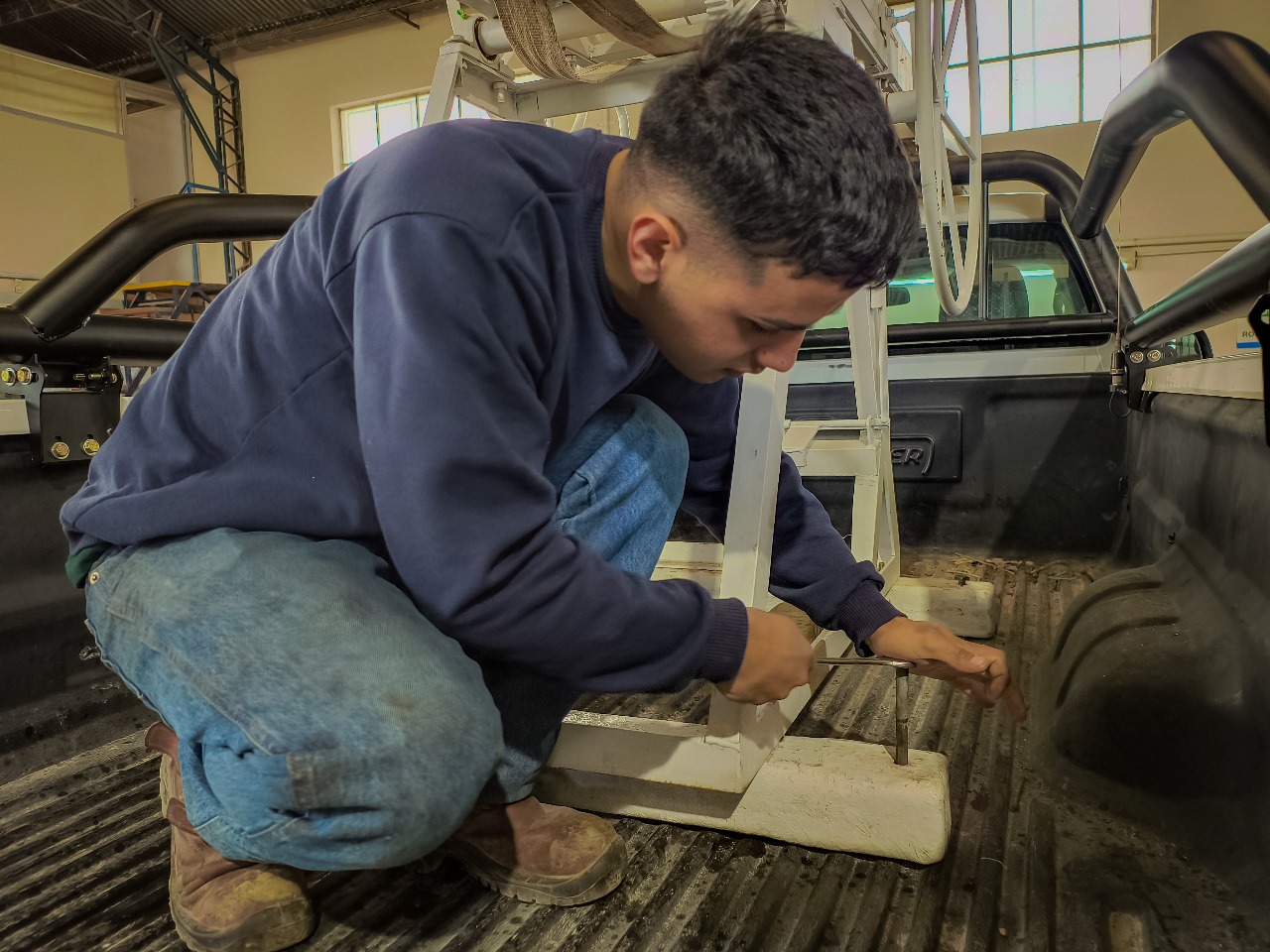 En esta oportunidad, se ejecutó el montaje de una nueva escalera y jaula antivuelco, de un nuevo móvil destinado al sector de Control y Normalización, dependiente de la Gcia. Administrativa. También se llevaron adelante tareas de mantenimiento preventivo y reemplazo de correas, aceites y chequeo generales a un móvil correspondiente al sector de Verificación y Tomaestados.