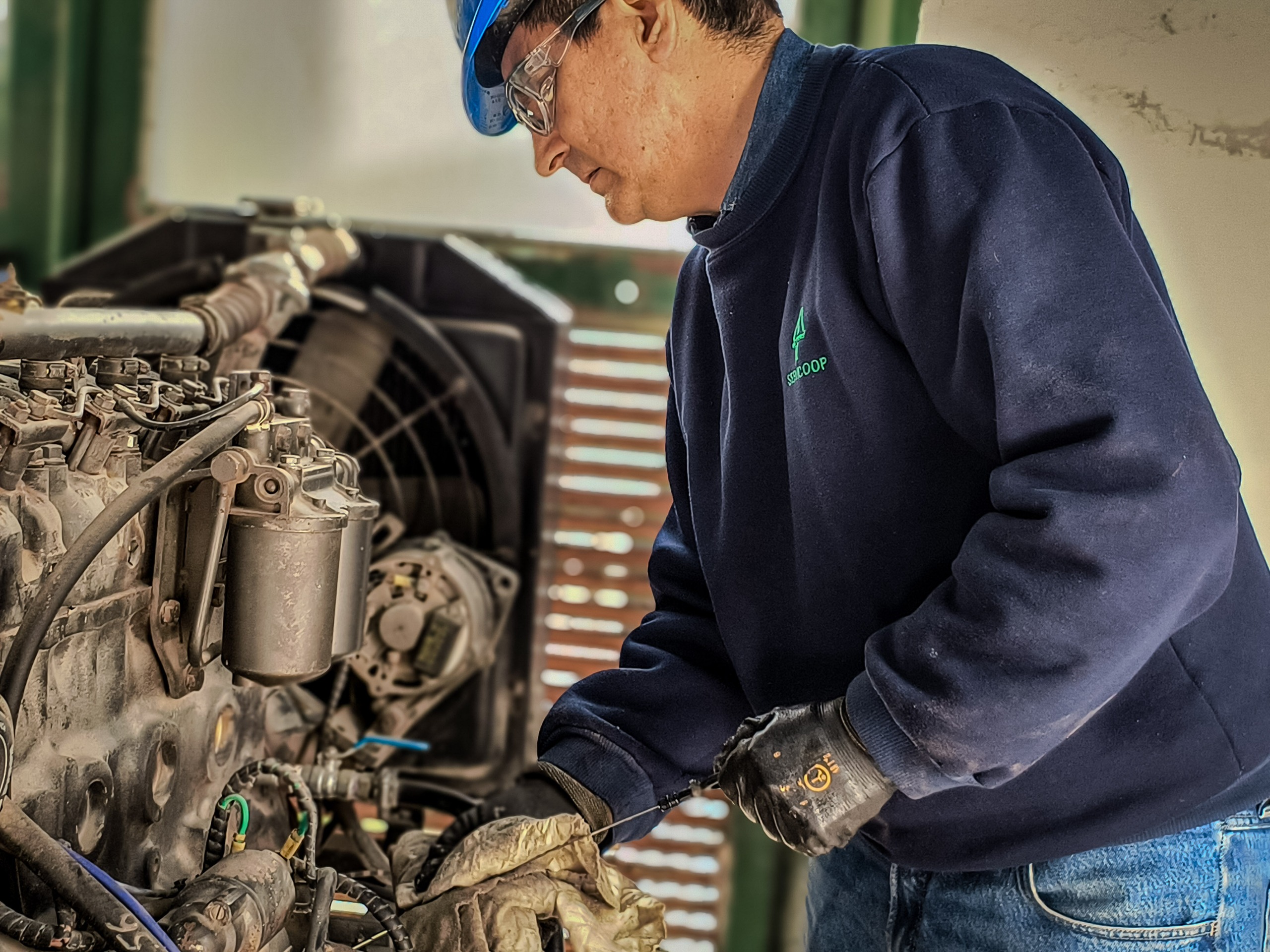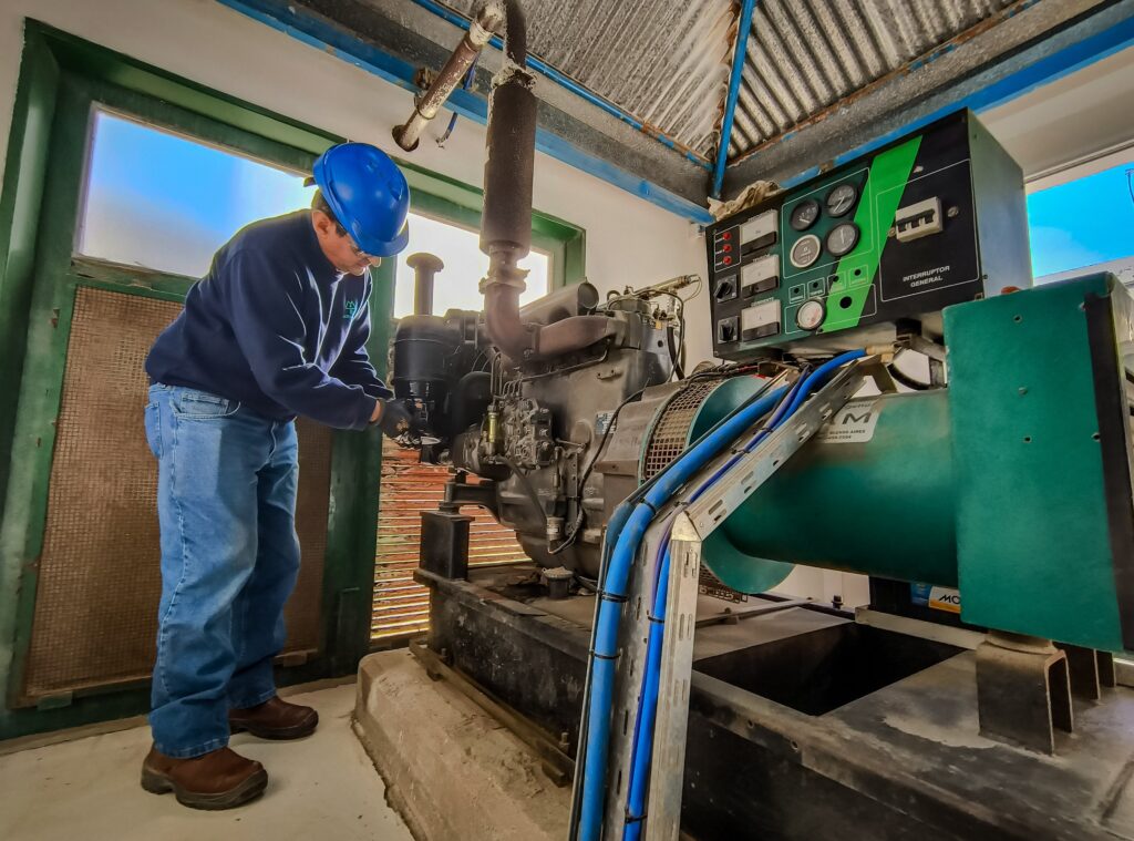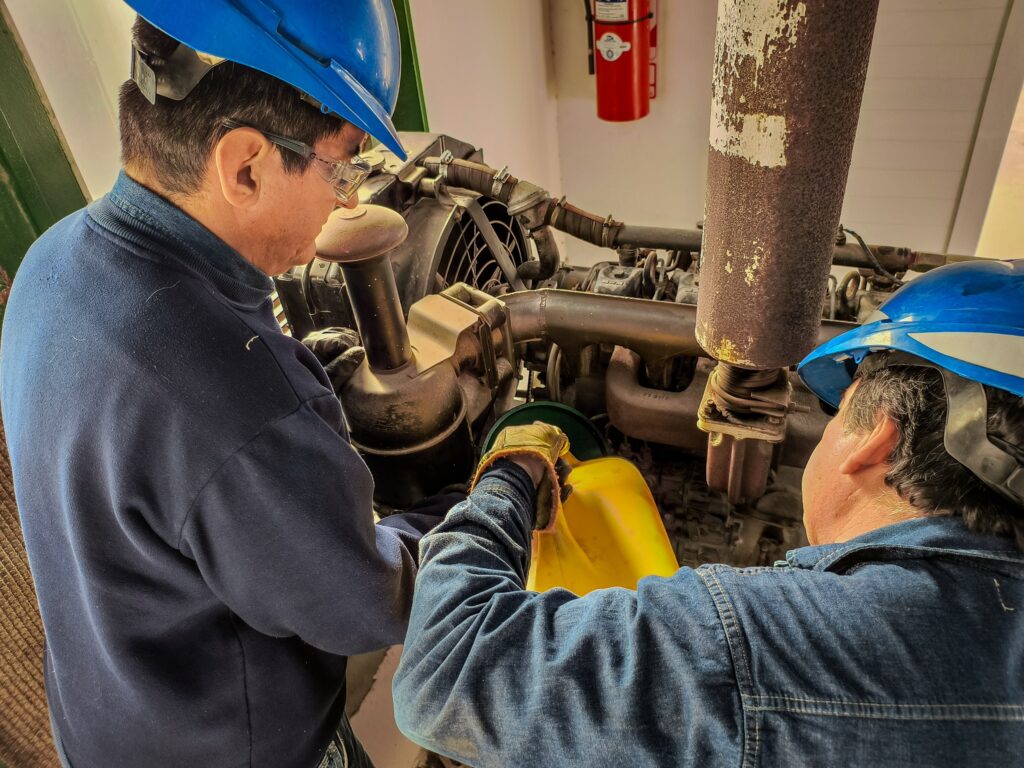 En la mañana de hoy, se realizaron tareas de mantenimiento y el cambio de aceite y filtros de un generador de alta potencia perteneciente al sistema cloacal, que funciona como suministro eléctrico alternativo en la Estación Elevadora N° 4.