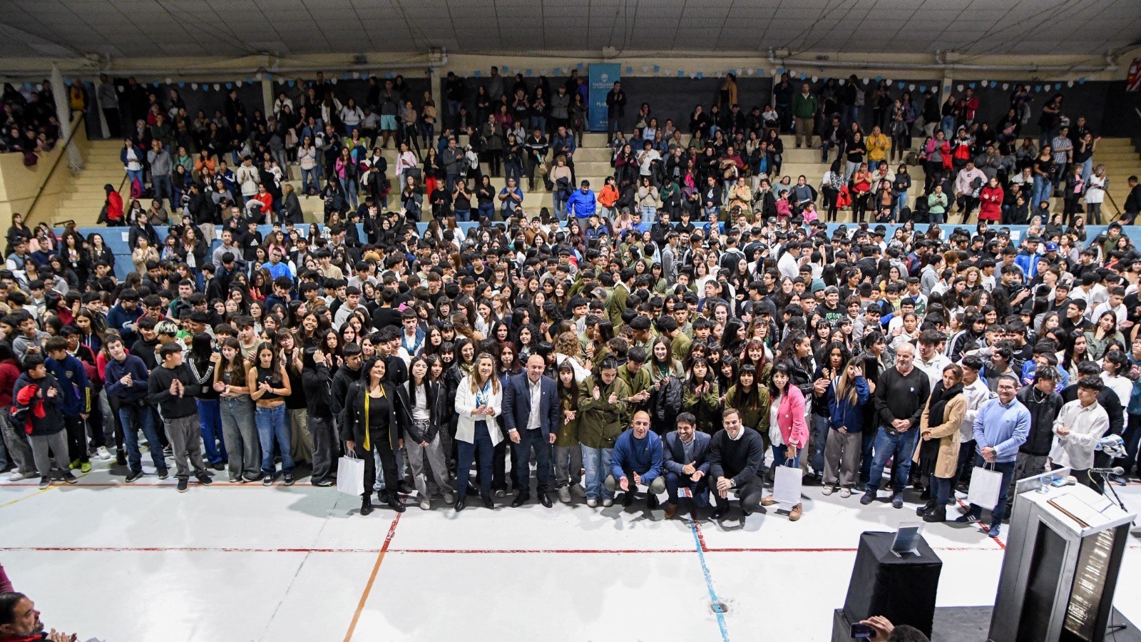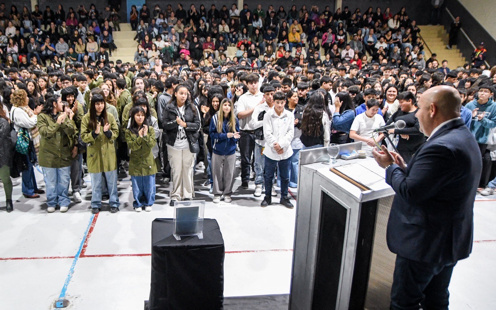 Ante un gran marco de público, el intendente de Puerto Madryn, Gustavo Sastre, encabezó el acto que se llevó a cabo esta mañana en el Gimnasio Municipal Nº 1, donde se realizó una nueva ceremonia de promesa de lealtad a la Constitución Nacional, protagonizada por alumnos de tercer año de escuelas secundarias municipales y provinciales.
