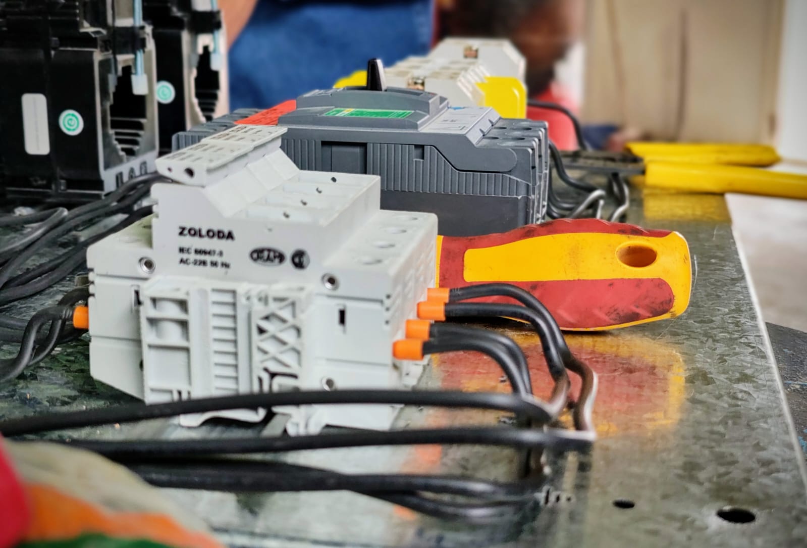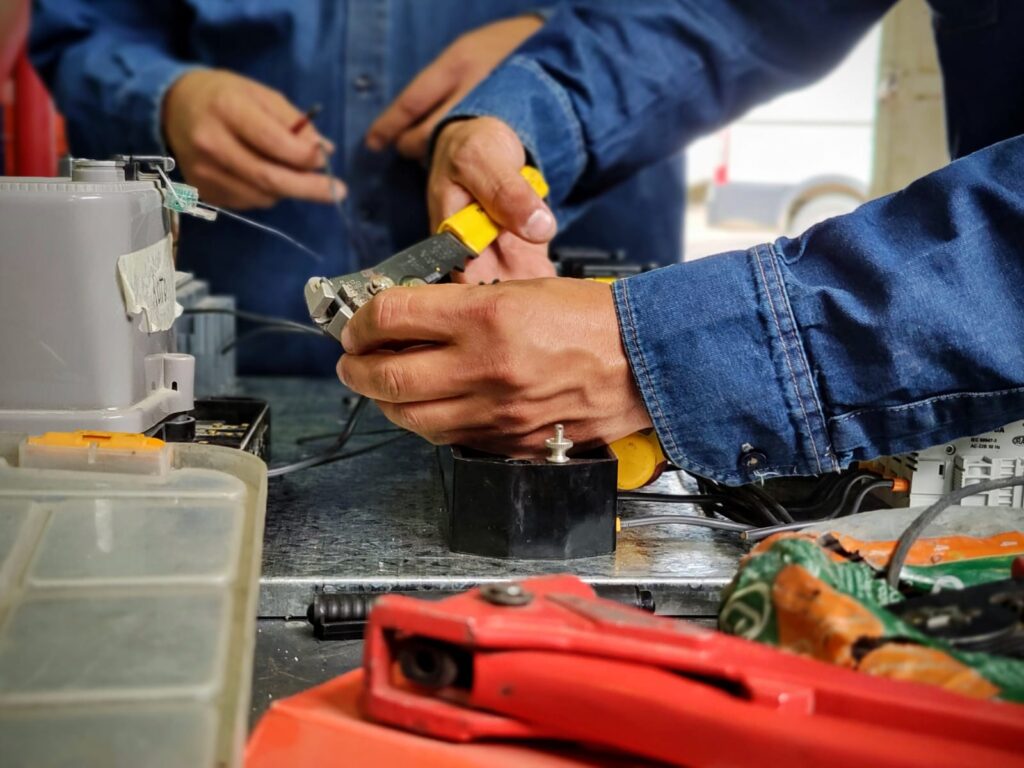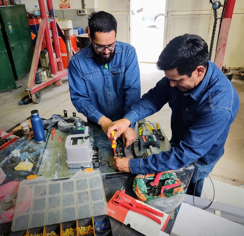 Nuestro personal de Electromecánica se encuentra desarrollando la construcción de un tablero de medición y distribución y otro de control para los 4 aireadores de lagunas. Estos nuevos tableros reemplazarán a los existentes, cumpliendo con las exigencias que impone el avance tecnológico.