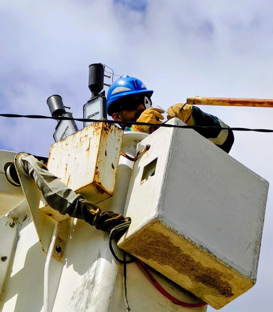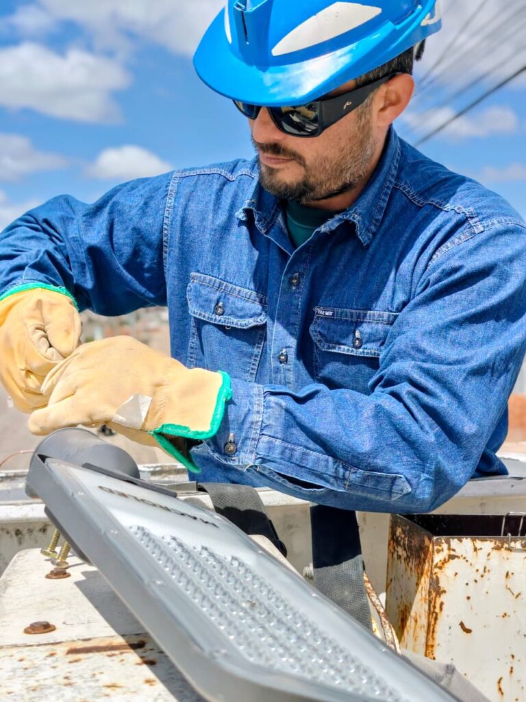 Nuestro personal de alumbrado, continua con las obras de modernización del servicio, en distintos puntos de la ciudad. En lo que va del año se han instalado alrededor de 2000 nuevas luminarias en espacios comunes, plazas, corredores escolares, paradas de taxis y colectivos, puestos de control y arterias centrales.