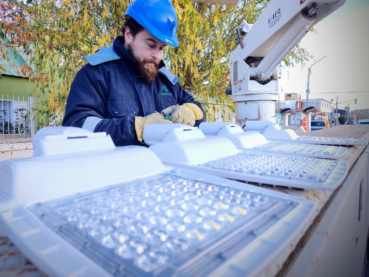 Nuestro personal de Herrería constantemente realiza la construcción de brazos para la ampliación del servicio de alumbrado público de Puerto Madryn. Nuestra ciudad cuenta con 19.000 luminarias y más de 400 cajas de automatismo instaladas.