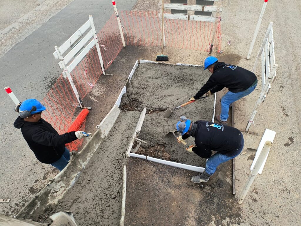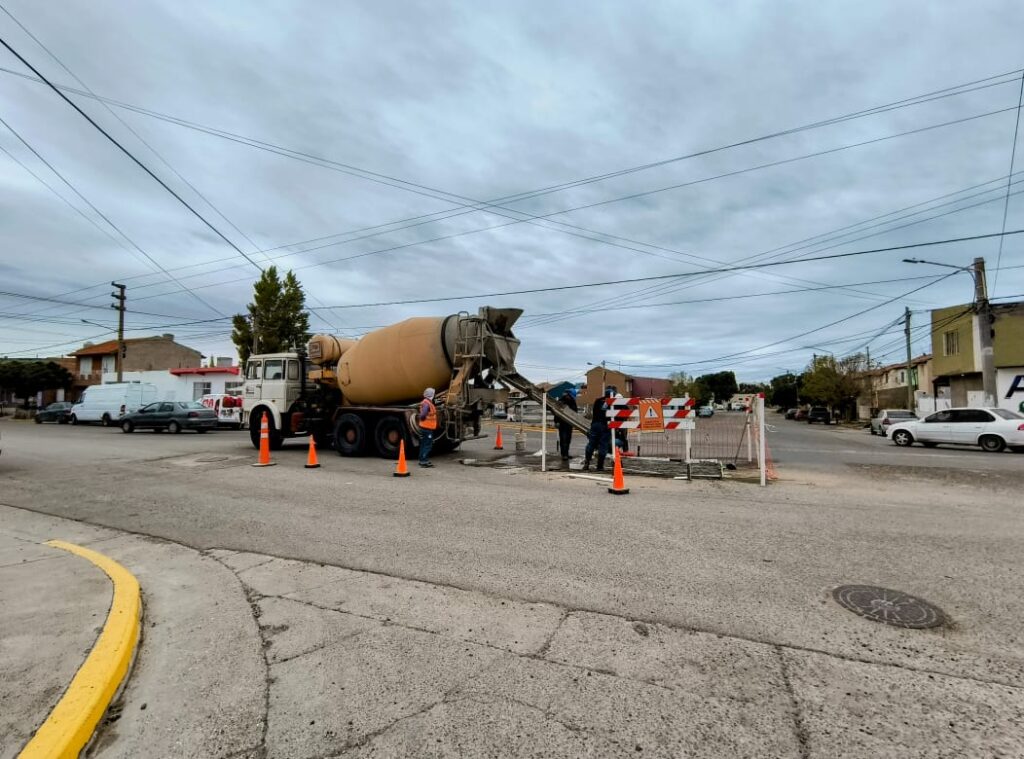 Hoy nuestro personal de servicios auxiliares, dependiente de la Gerencia de Agua y Saneamiento, llevó adelante la colada de hormigón, en la intersección de las calles Juan Muzzio y Estanislao del Campo. Las obras civiles, se realizan de forma posterior a la intervención sobre el servicio de distribución de agua potable. Solicitamos circular con precaución y respetar la señalización vial.