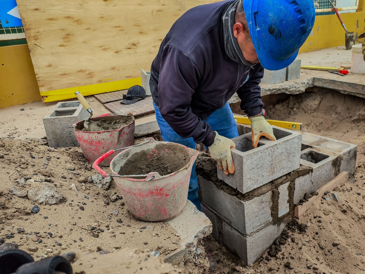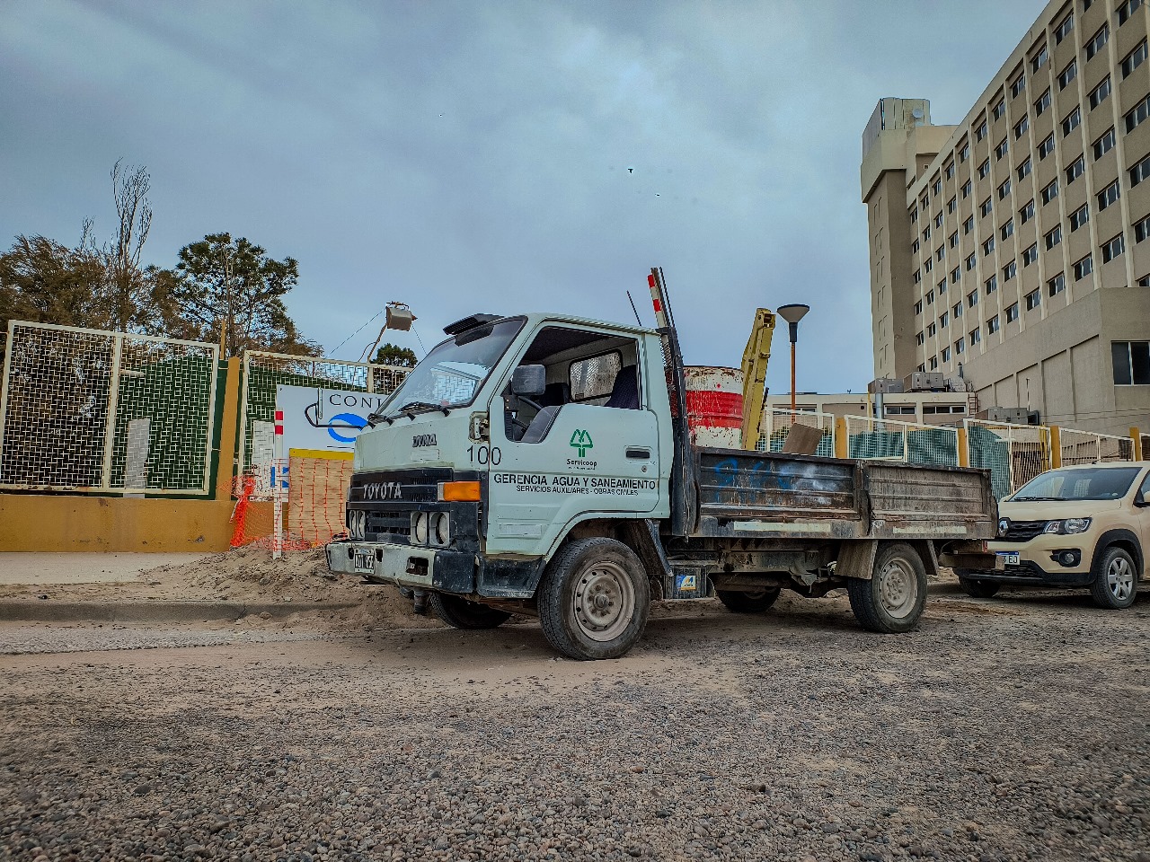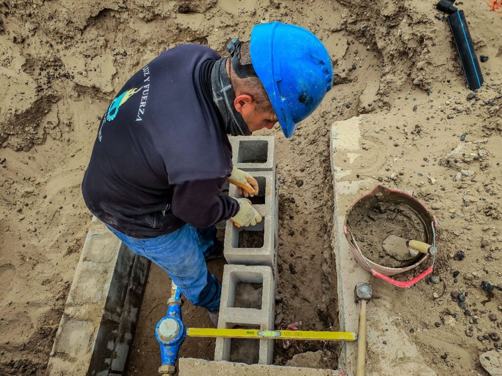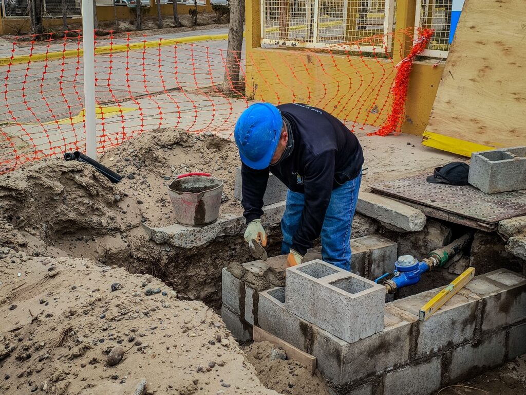 Nuestro personal de Obras Civiles, dependiente de la Gcia. de Agua y Saneamiento, lleva adelante la construcción de una cámara de inspección y la reparación de veredas afectadas por la obra de reconfiguración de redes de agua potable sobre Bv. Brown al 2900.