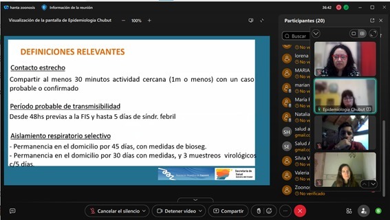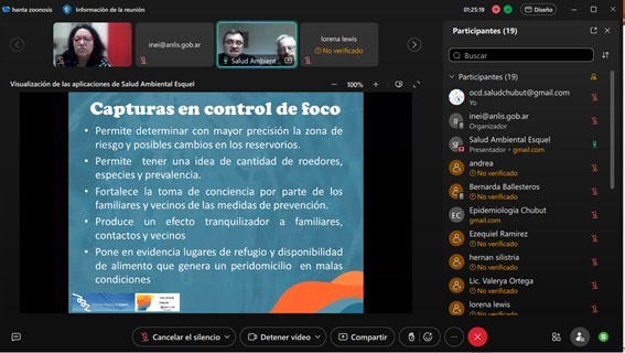 Bajo el nombre “Hantavirus: evento zoonótico y endémico en la Región Patagónica”, Chubut expuso para el resto de Argentina en el marco de una presentación de la que participaron la jefa del Departamento Provincial de Zoonosis, Alejandra Sandoval; referentes de Zoonosis y Salud Ambiental del Área Programática Esquel; e integrantes de la Residencia de Epidemiología de la Secretaría de Salud provincial.