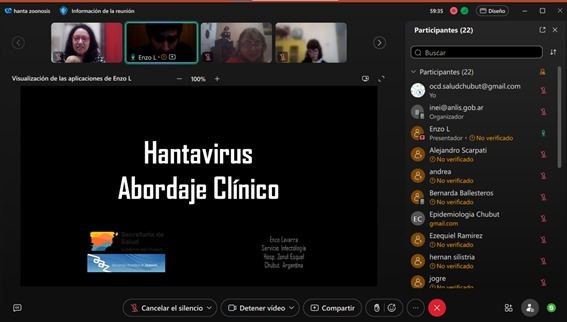 Integrantes del equipo técnico de la Secretaría de Salud dependiente del Gobierno del Chubut que conduce Ignacio “Nacho” Torres, disertaron sobre el abordaje de la problemática del Hantavirus en el marco de los Webinarios 2024 de la Asociación Argentina de Zoonosis (AAZ), una instancia de capacitación virtual de la que participan profesionales de diversas disciplinas de todo el país.