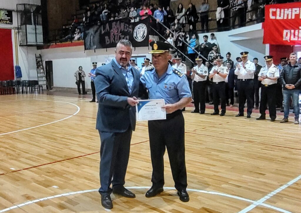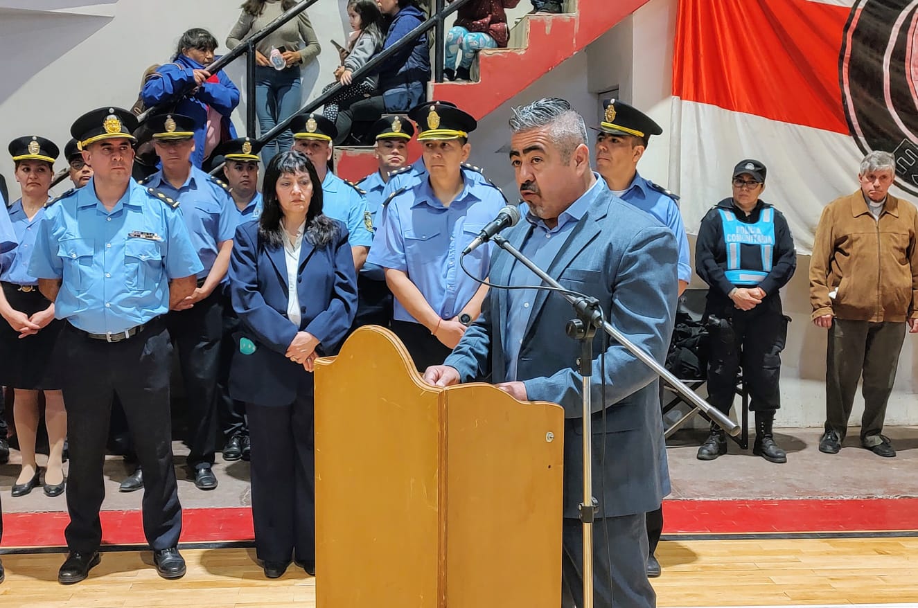 “Tenemos una de las mejores policías de la Argentina”, afirmó el ministro de Seguridad y Justicia del Chubut, Héctor Iturrioz, al encabezar el acto ante un colmado gimnasio del Club Independiente Deportivo de la ciudad cordillerana.