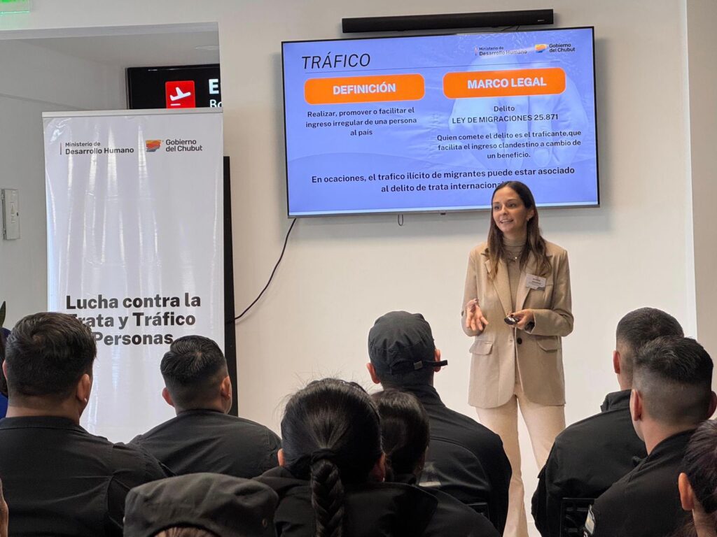 En el marco de las acciones de prevención y lucha contra la trata y el tráfico de personas, el Gobierno del Chubut realizó una jornada de capacitación en el Aeropuerto El Tehuelche, dirigida al personal que cumple funciones en esa terminal aérea.