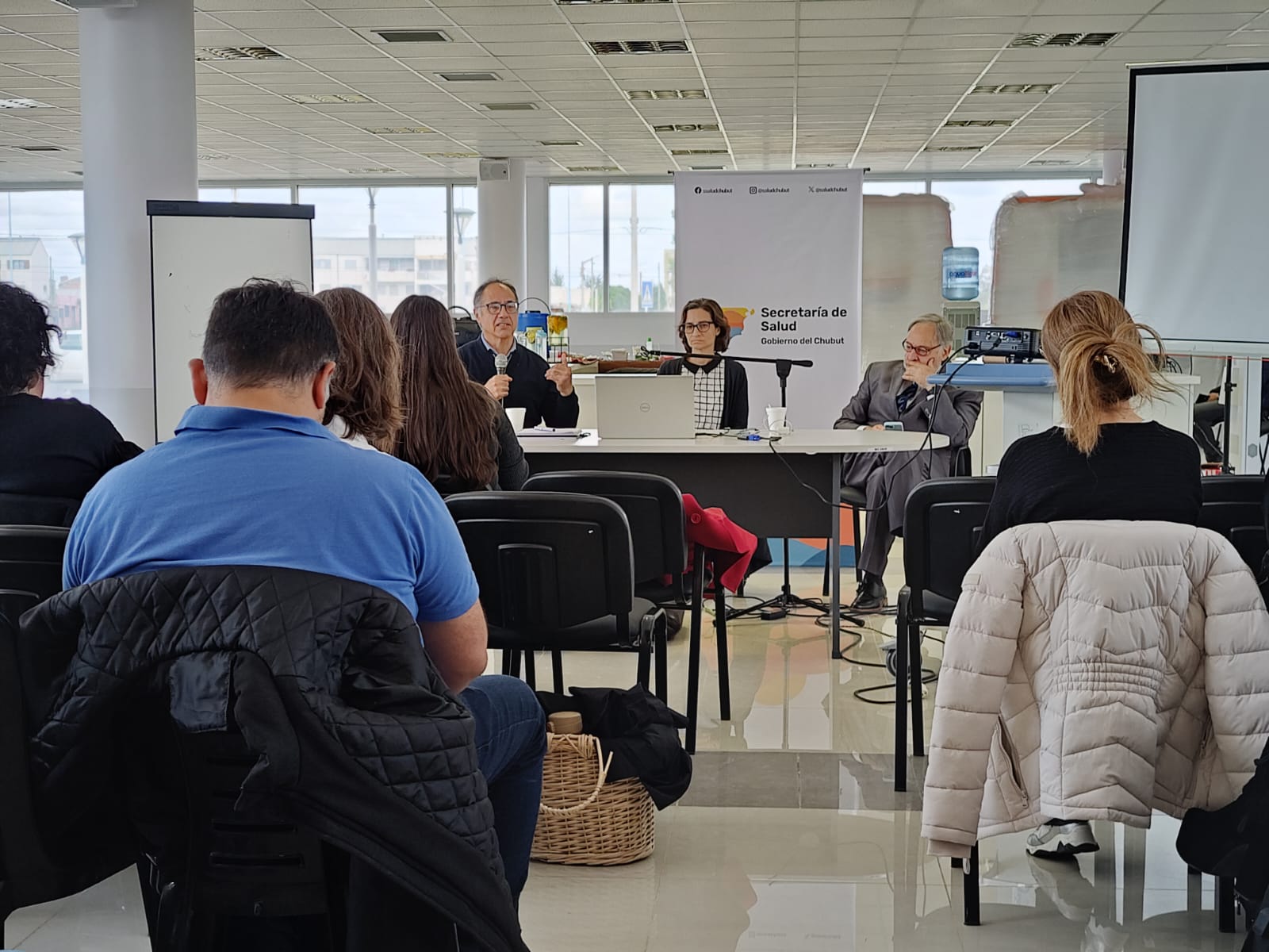 La instancia presencial de la capacitación se desarrolló en Trelew con la participación de la secretaria de Salud, el presidente del ISSyS y el reconocido experto nacional en la temática, el médico sanitarista Carlos Díaz.
