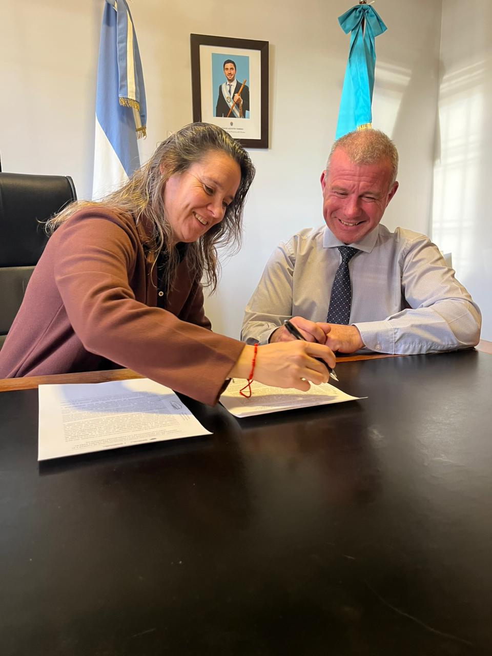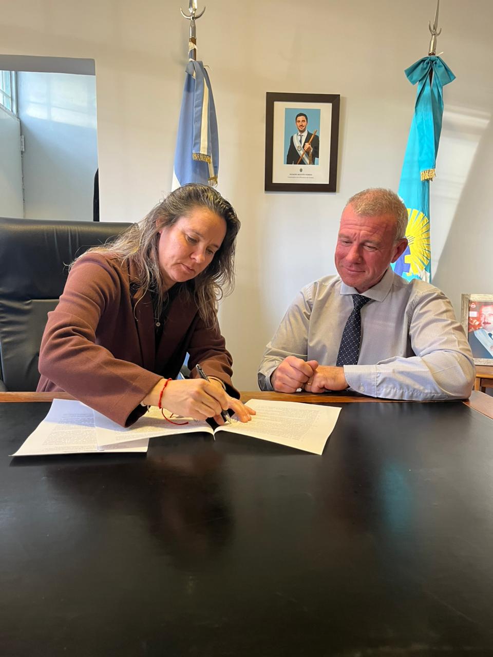 La rúbrica del acuerdo se celebró en las instalaciones del municipio valletano entre la ministra de Producción del Chubut, Laura Mirantes y el intendente local Darío James.