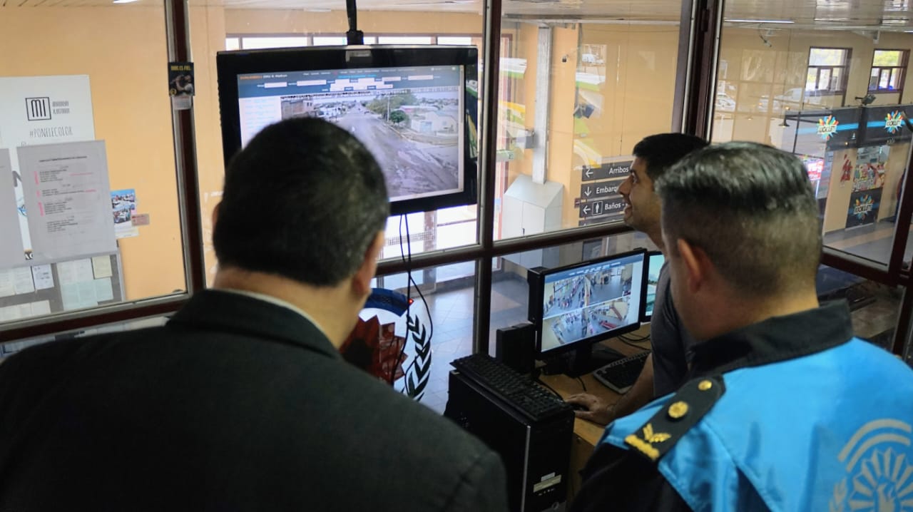 Durante su visita a Puerto Madryn, el subsecretario Fernández visitó la oficina técnica de mantenimiento del sistema de monitoreo y el escáner ubicado en la Terminal de Ómnibus para verificar el funcionamiento general, dialogaron con el personal que realiza las tareas diariamente.