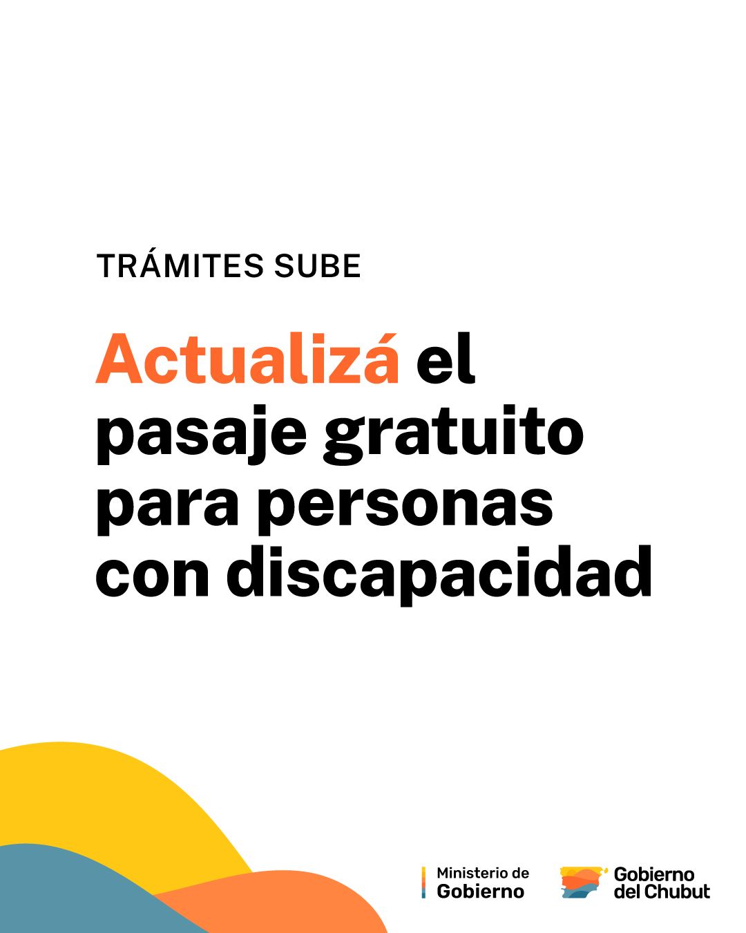 El Gobierno del Chubut, a través del Ministerio de Gobierno, informó que para renovar el atributo de discapacidad en la tarjeta SUBE -que otorga la gratuidad en el transporte público- los usuarios deben realizar el trámite de forma presencial o mediante el asistente virtual DINO (WhatsApp 280 460-3466), lo que facilita y agiliza la gestión. Para ello, deberán contar con el DNI vigente, el Certificado Único de Discapacidad (CUD) y la tarjeta SUBE.