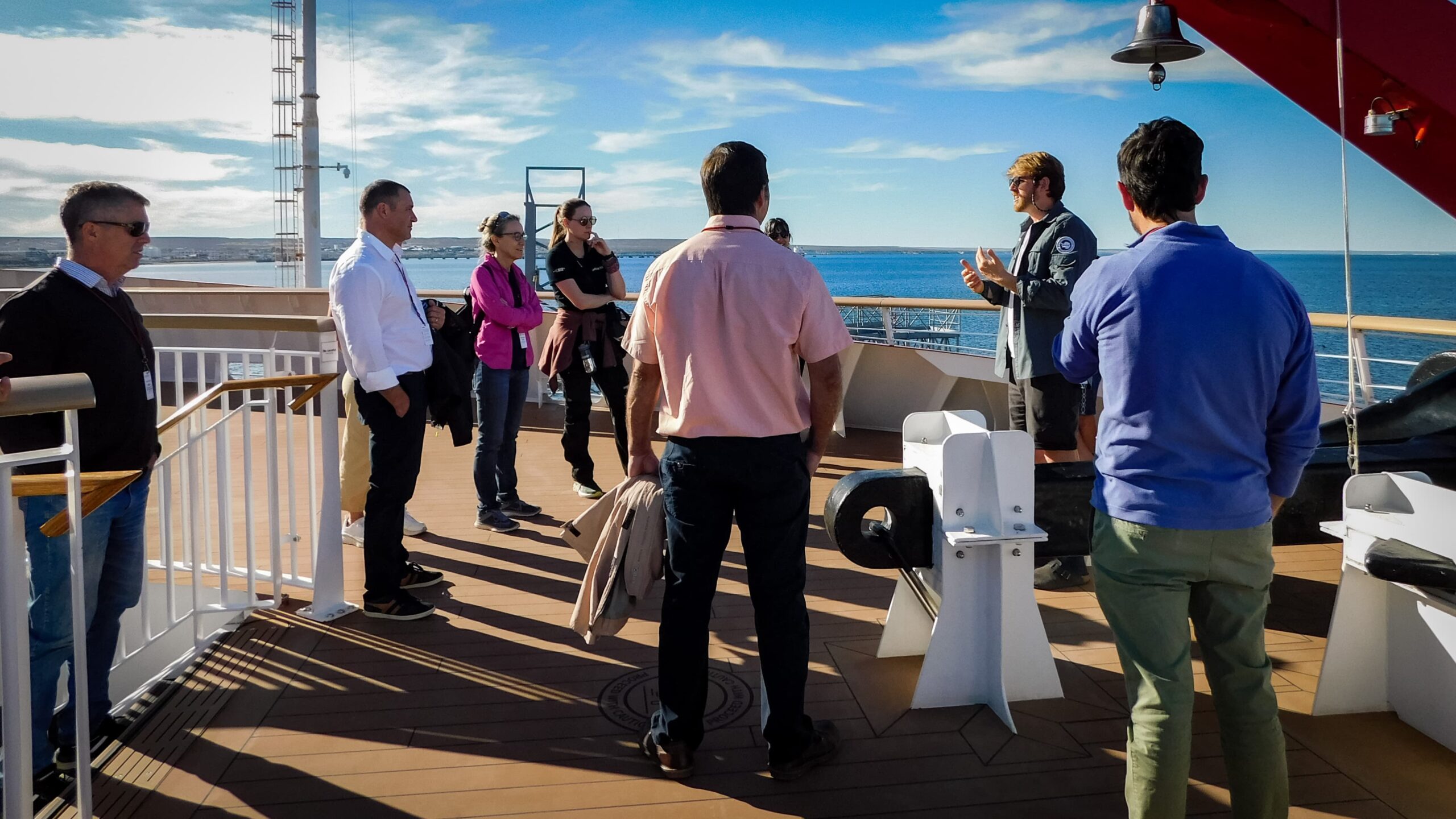Con la intención de potenciar la actividad turística en sus diferentes facetas, el Gobierno de la Provincia del Chubut, que encabeza Ignacio “Nacho” Torres, en colaboración con la Administración Portuaria de Puerto Madryn y la Agencia Marítima Delver, facilitaron un valioso intercambio entre científicos locales del CONICET-CENPAT y los expertos a bordo del buque.