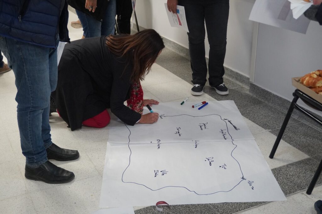 En el marco de la jornada, y asistidos por Juan Manuel Tetamanti, doctor en Geografía e investigador que aportó la perspectiva metodológica de la actividad, los participantes trabajaron en la creación de mapas en los que ubicaron los diferentes lugares de atención pública en Trelew, marcando experiencias positivas y proponiendo mejoras para resolver problemáticas basadas en experiencias negativas recogidas del encuentro anterior, donde se realizó un estudio de opinión.