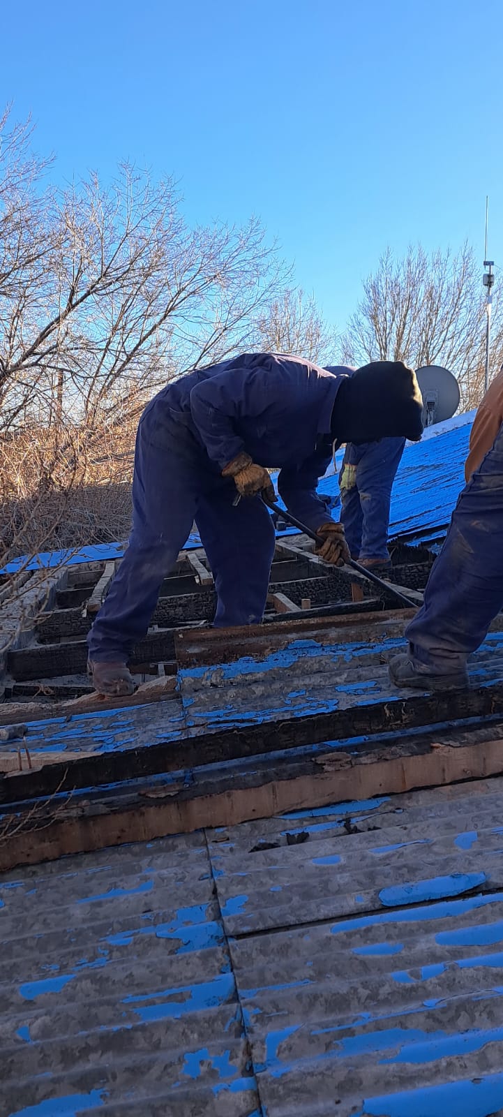En la Escuela Nº 117 de Lagunita Salada, los trabajadores de Obras Públicas realizaron tareas de reparación del techo y de parte de la estructura de la cocina y el depósito del establecimiento.
