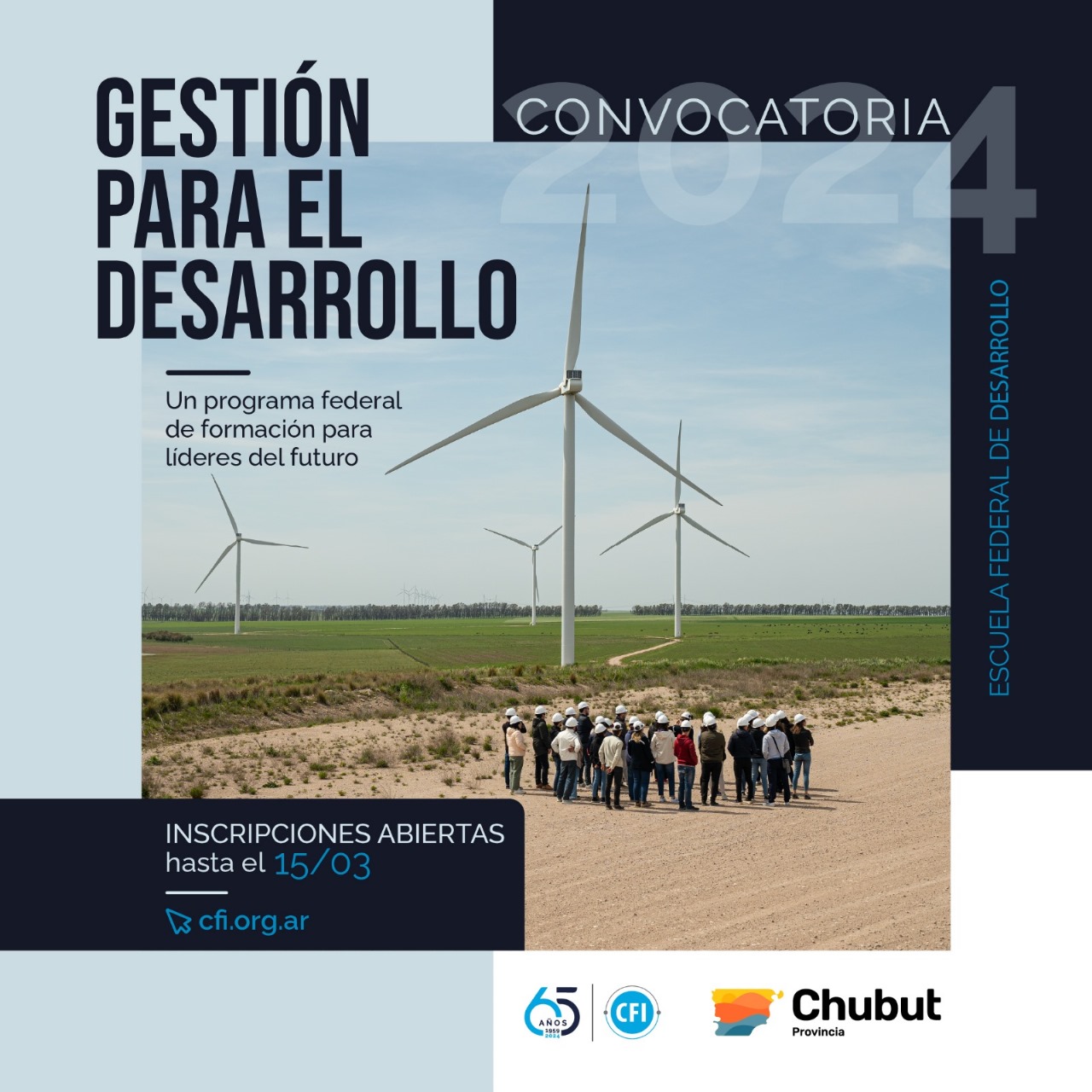 El Gobierno del Chubut, por intermedio de la Secretaría General de Gobierno y la Secretaría de Infraestructura y Planificación, recuerda a todos los interesados de la sociedad civil y organismos estatales que se encuentran abiertas las inscripciones para participar del Programa Federal de Formación “Gestión para el Desarrollo” del Consejo Federal de Inversiones.