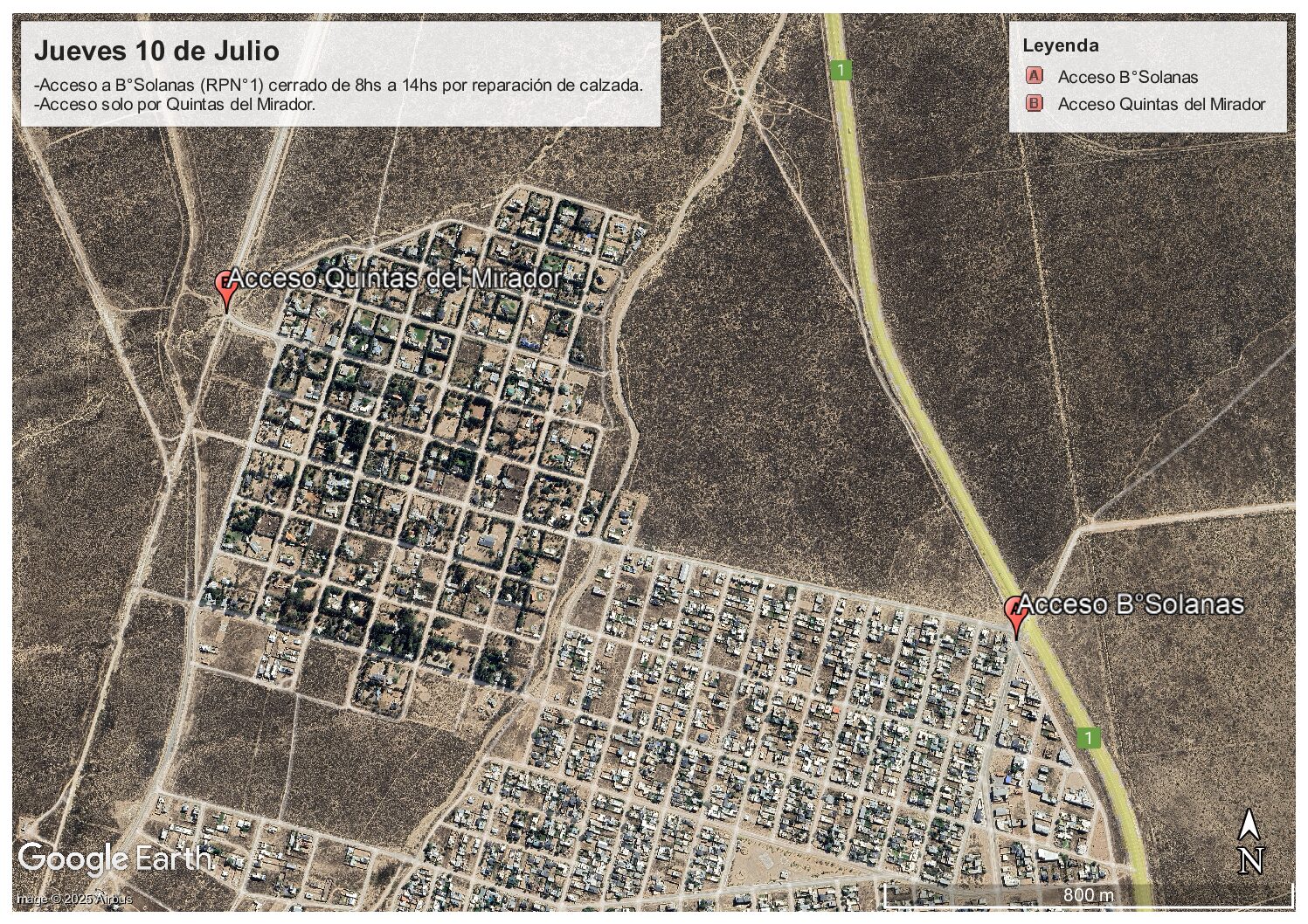 Ante ello este jueves 10 de julio se interrumpirá totalmente el tránsito entre las 8 y las 14 horas debido a que se trabajará con maquinaria pesada sobre la calzada. En ese lapso, los vecinos deberán utilizar el acceso por el barrio denominado “Quintas del Mirador”.