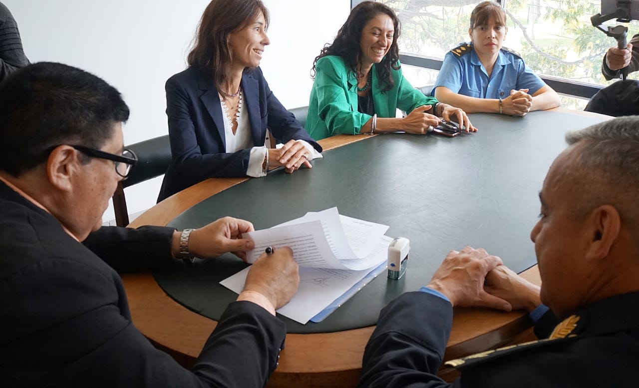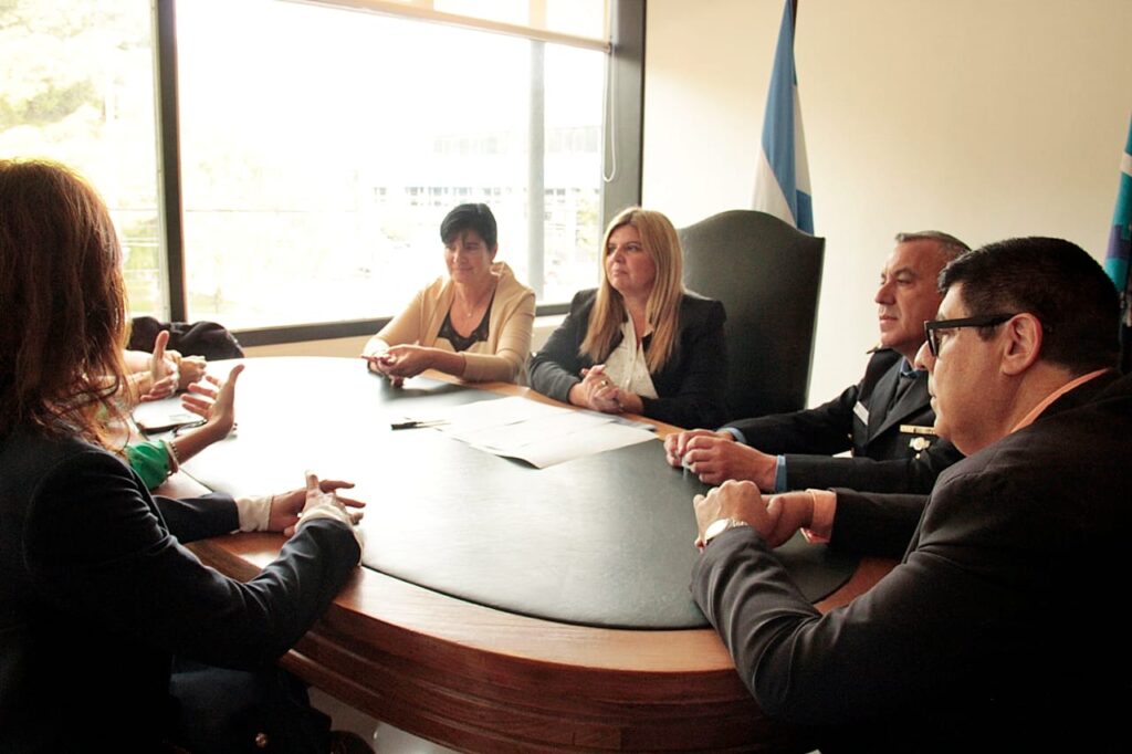 En representación del Ejecutivo provincial, el subsecretario de Seguridad, Claudio Fernández -junto al subjefe de la Policía del Chubut, Mauricio Zabala- mantuvo una reunión con la presidenta del Superior Tribunal de Justicia del Chubut, Camila Banfi, durante la cual se rubricó el citado convenio para fomentar el conocimiento y respeto de los derechos de las mujeres en el marco del artículo 8 de la Convención “Belén Do Para” (realizada en Brasil en junio de 1994) ‘haciéndolo extensivo al colectivo de la diversidad con el objetivo de modificar patrones socioculturales que operen en contra de la igualdad’, según se incorporó en el documento oficial.
