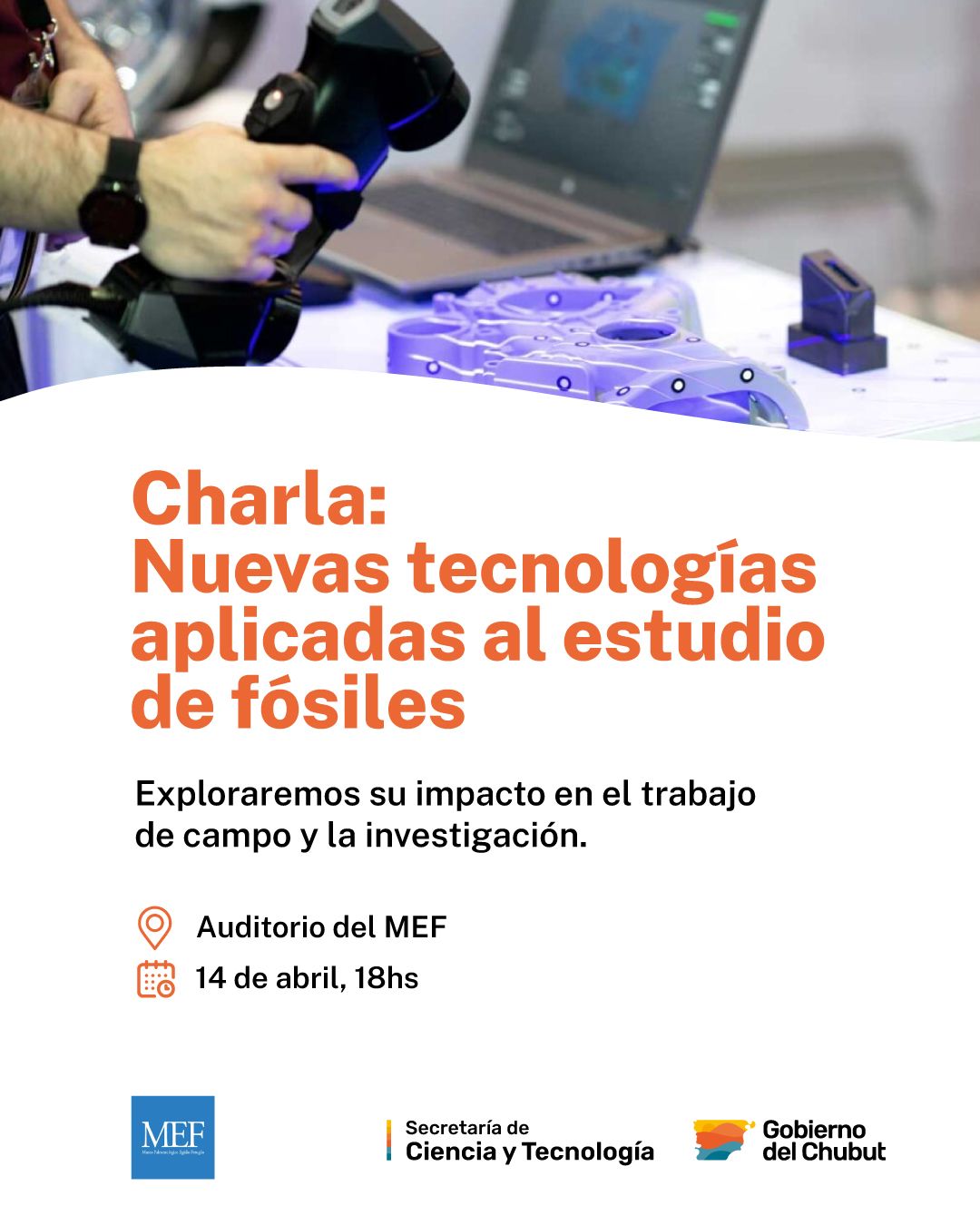 El Gobierno del Chubut, a través de la Secretaría de Ciencia y Tecnología y en conjunto con el Museo Paleontológico Egidio Feruglio (MEF), invita a la comunidad a participar de la charla “Nuevas tecnologías aplicadas al estudio de fósiles”, que se realizará este lunes 14 de abril a las 18 horas en el auditorio del MEF, en la ciudad de Trelew.