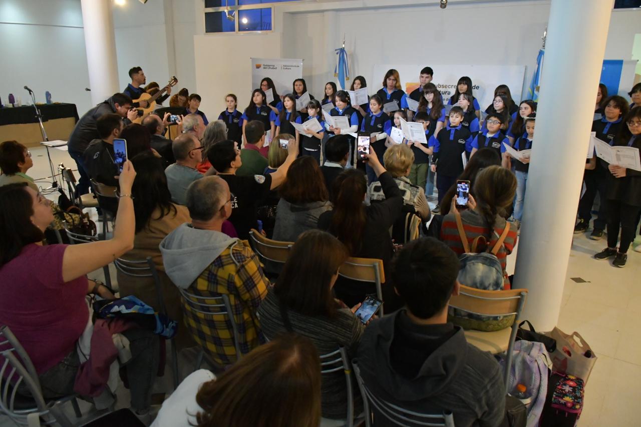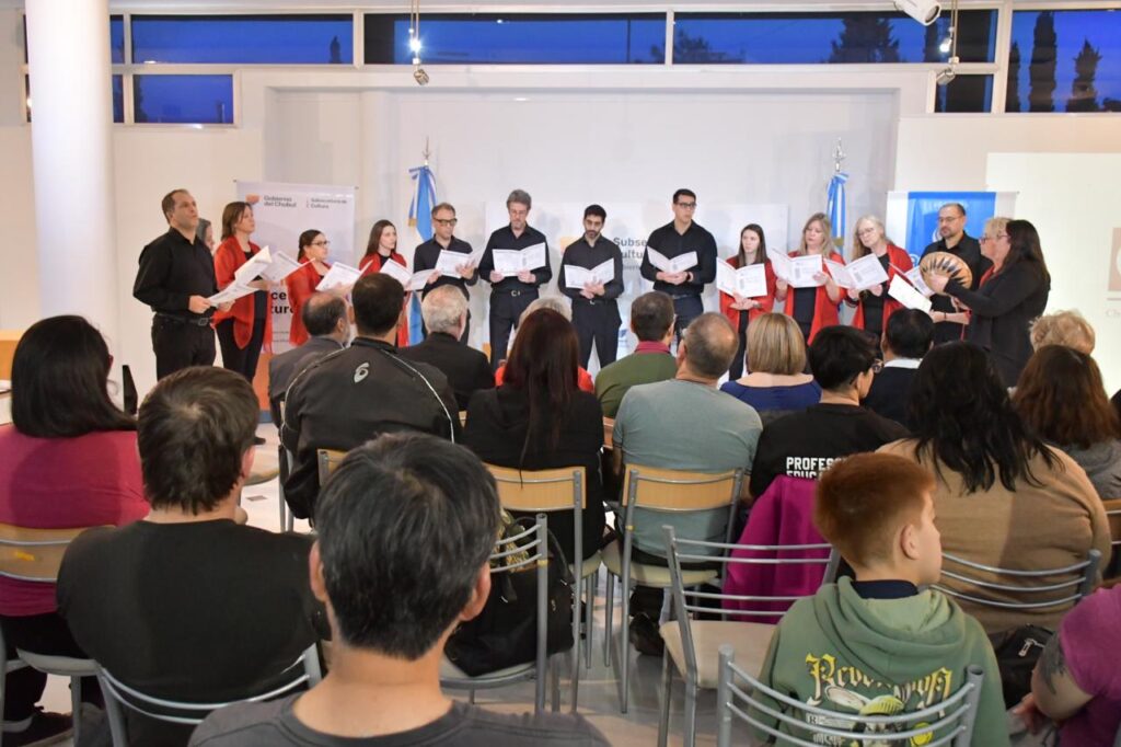 Realizado en el Centro Cultural Provincial en Rawson, del acto participaron también los coros “Locus Amoenus” de Trelew, a cargo de su directora Karina Torres y el Coro Infantil y Juvenil “Huenguelen” de la capital provincial.
