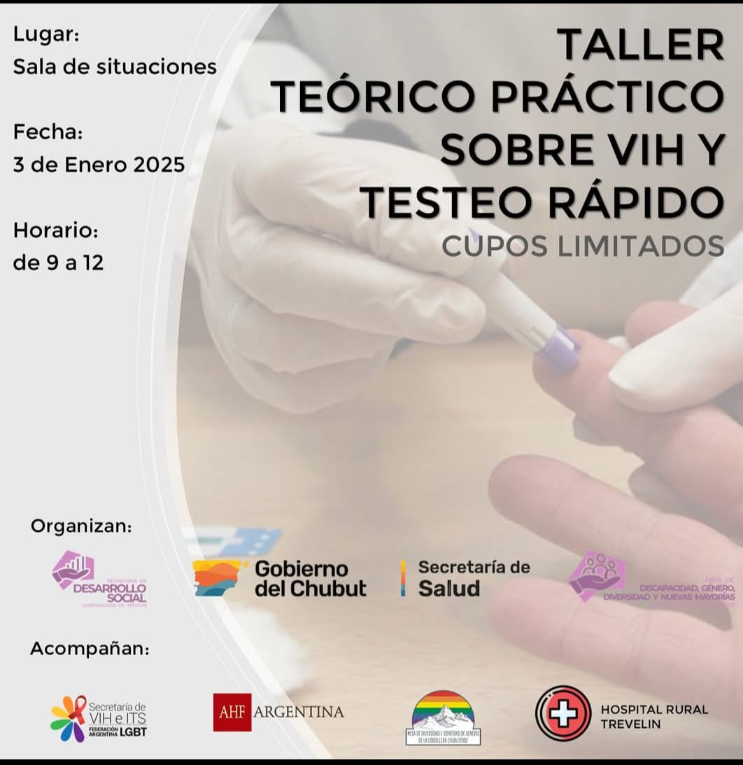 Asimismo, la propuesta cuenta con el acompañamiento de otras instituciones como el Hospital Rural de Trevelin, la Mesa de Diversidad, AHF Argentina, y la Secretaría de VIH e ITS de la Federación Argentina LGBT.